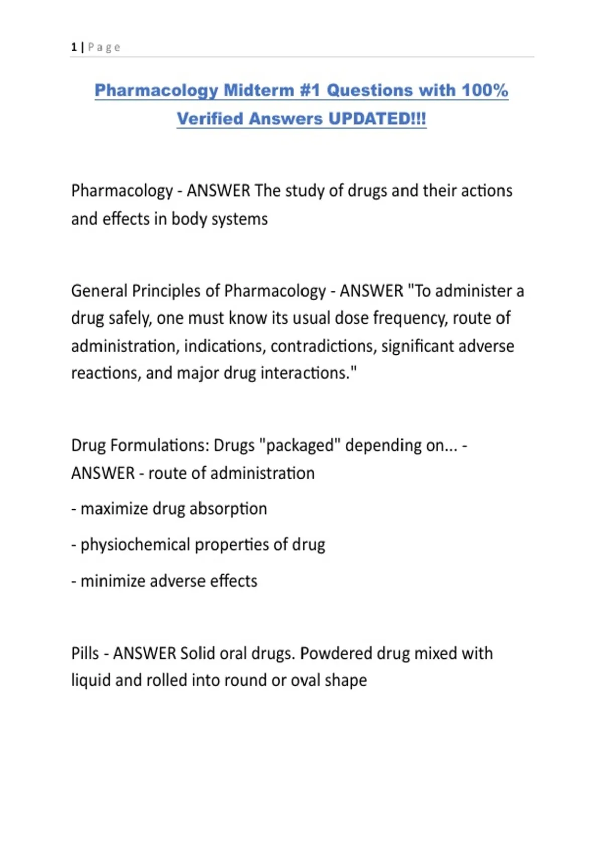 Pharmacology Midterm -1 Questions with 100% Verified Answers UPDATED!!!.