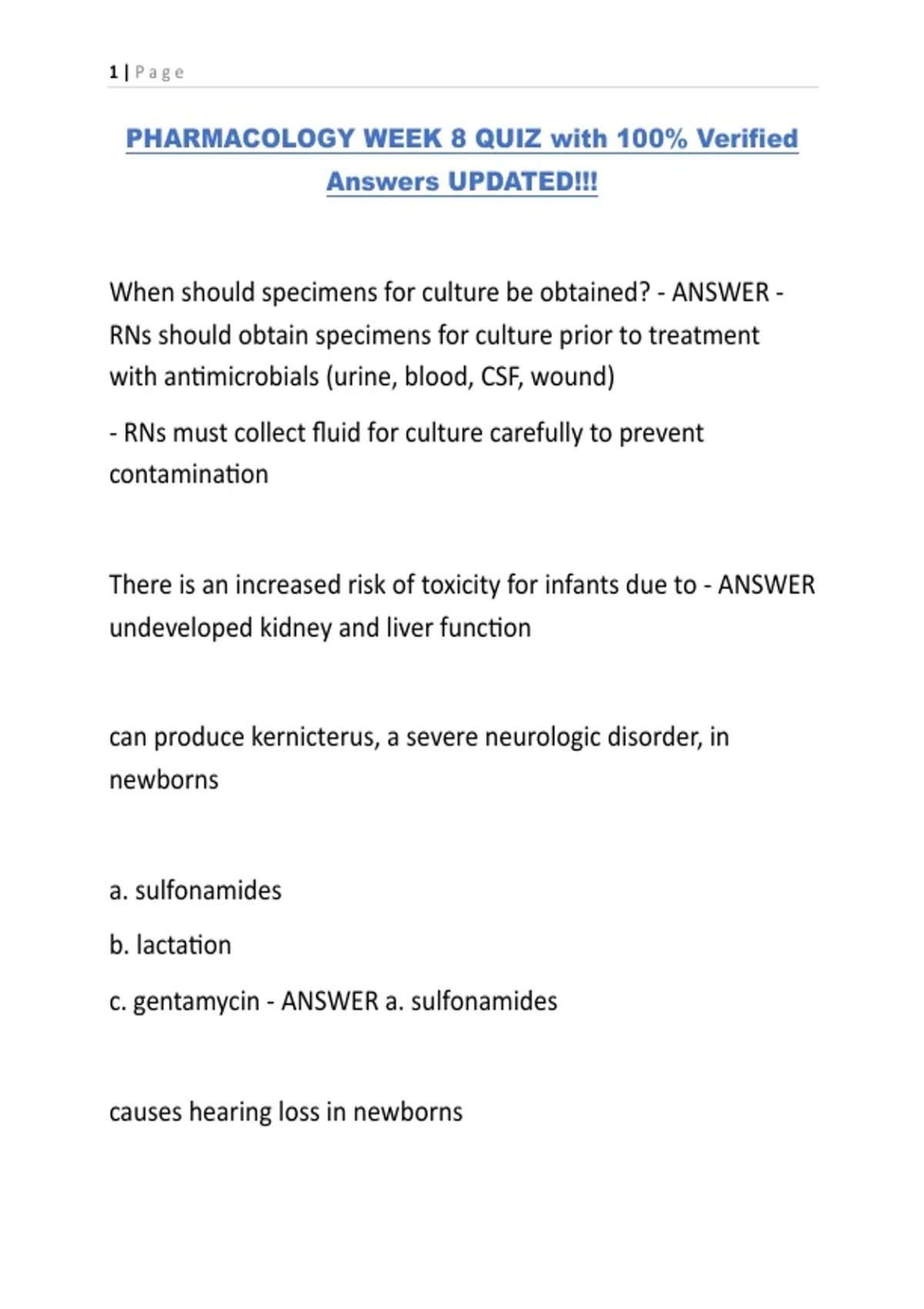 PHARMACOLOGY WEEK 8 QUIZ with 100% Verified Answers UPDATED!!!.