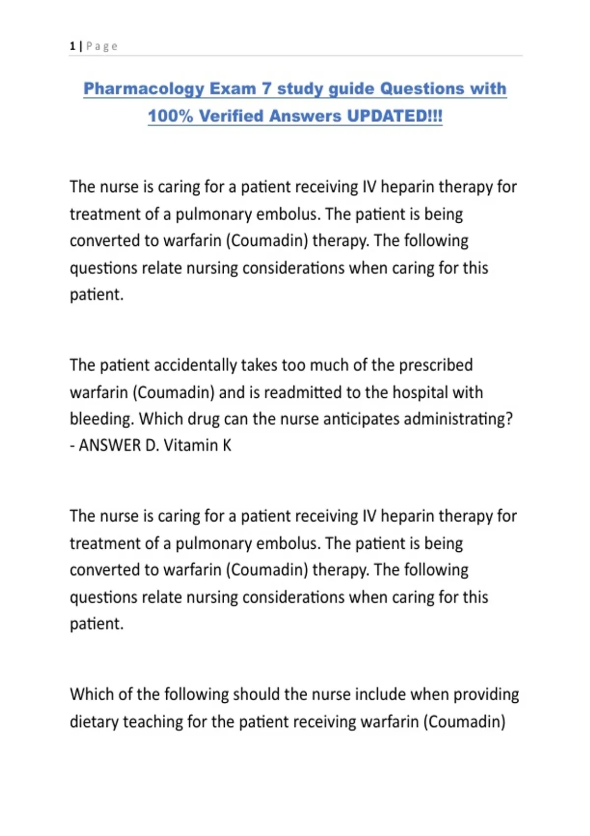 Pharmacology Exam 7 study guide Questions with 100% Verified Answers UPDATED!!!.
