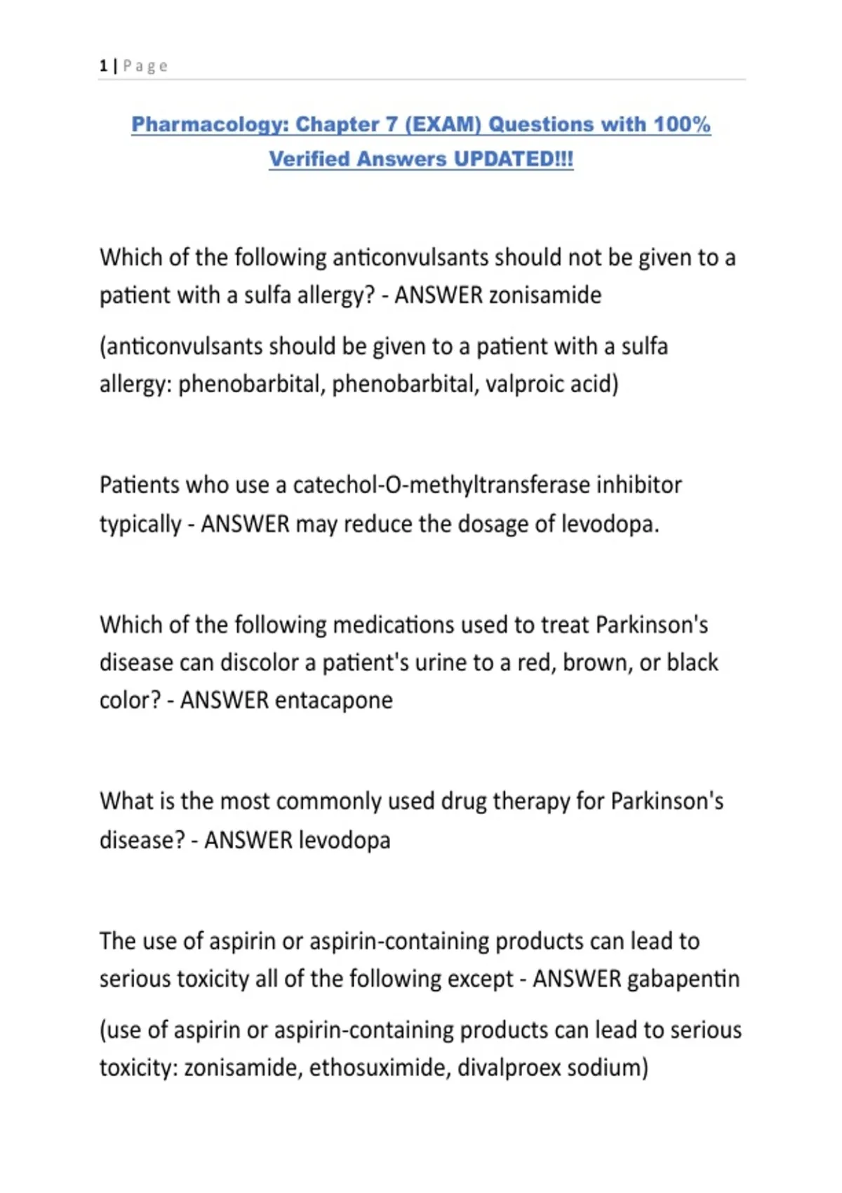 Pharmacology Chapter 7 (EXAM) Questions with 100% Verified Answers UPDATED!!!.