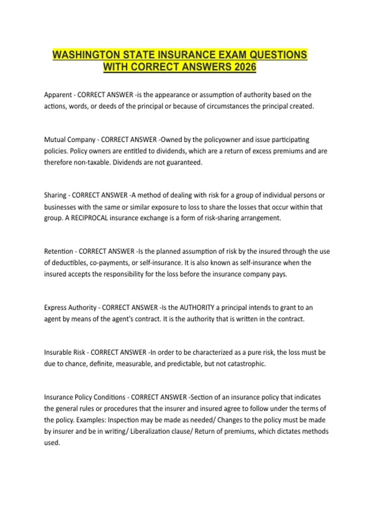 WASHINGTON STATE INSURANCE EXAM QUESTIONS WITH CORRECT ANSWERS 2026 WASHINGTON STATE INSURANCE EXAM QUESTIONS WITH CORRECT ANSWERS 2026