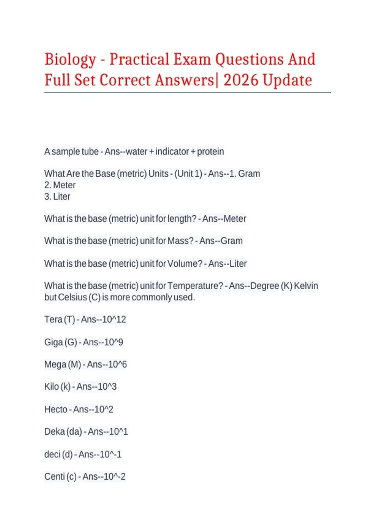 What Are the Base (metric) Units - (Unit 1) - Ans--1. Gram