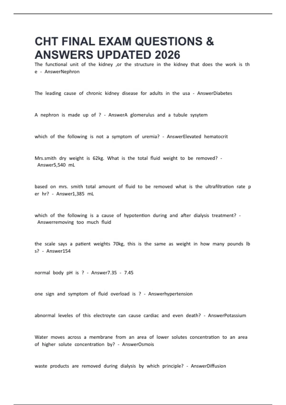 CHT FINAL EXAM QUESTIONS &