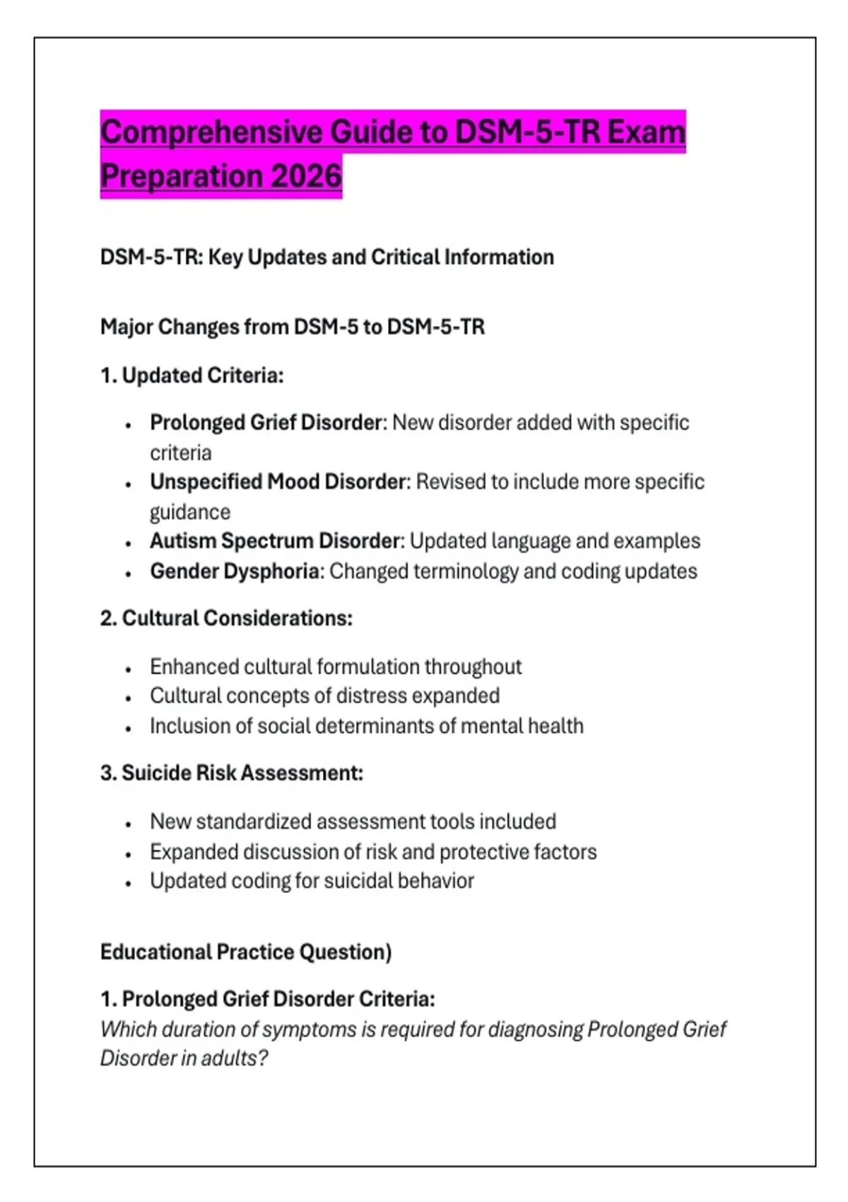 Comprehensive Guide to DSM-5-TR Exam
