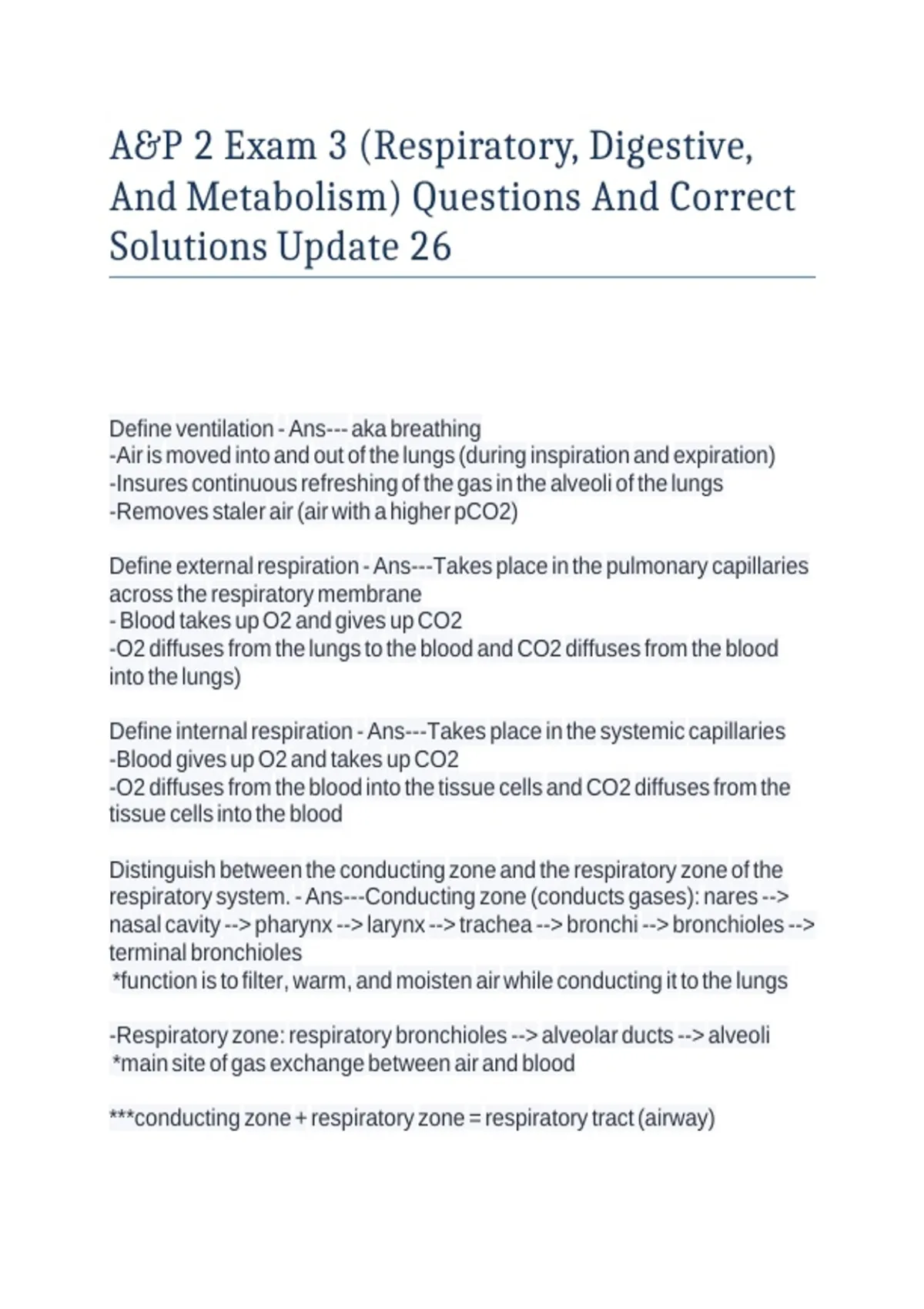 A&P 2 Exam 3 (Respiratory, Digestive, And Metabolism) Questions And Correct Solutions Update 26