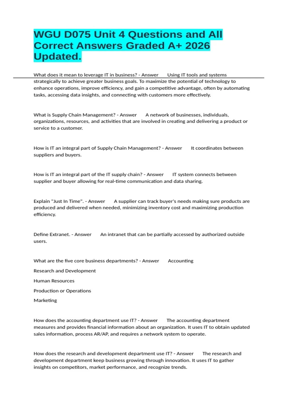 How is IT an integral part of Supply Chain Management? - Answer It coordinates between