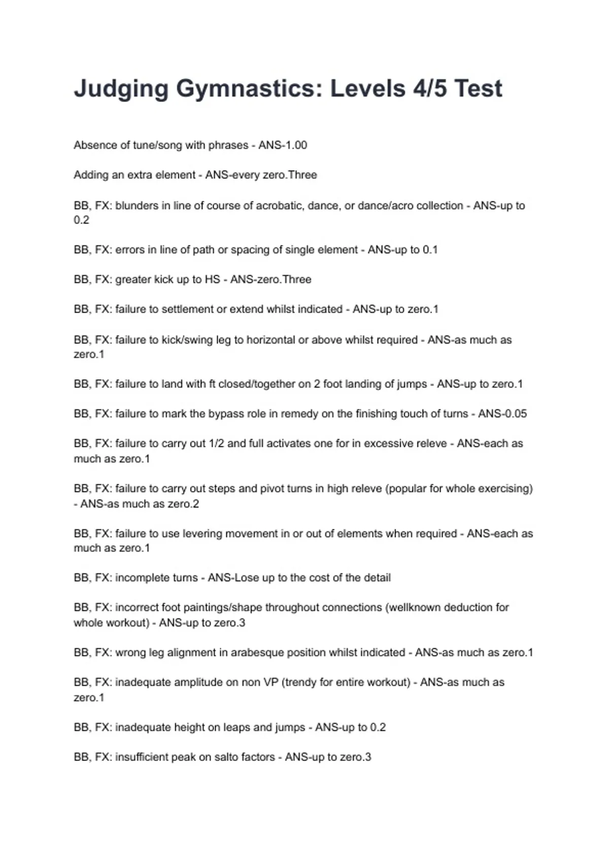 Judging Gymnastics: Levels 4/5 Test NEWEST 2026/2027 ACTUAL EXAM COMPLETE QUESTIONS AND CORRECT DETAILED ANSWERS (VERIFIED ANSWERS) |ALREADY GRADED A+||BRAND NEW!!