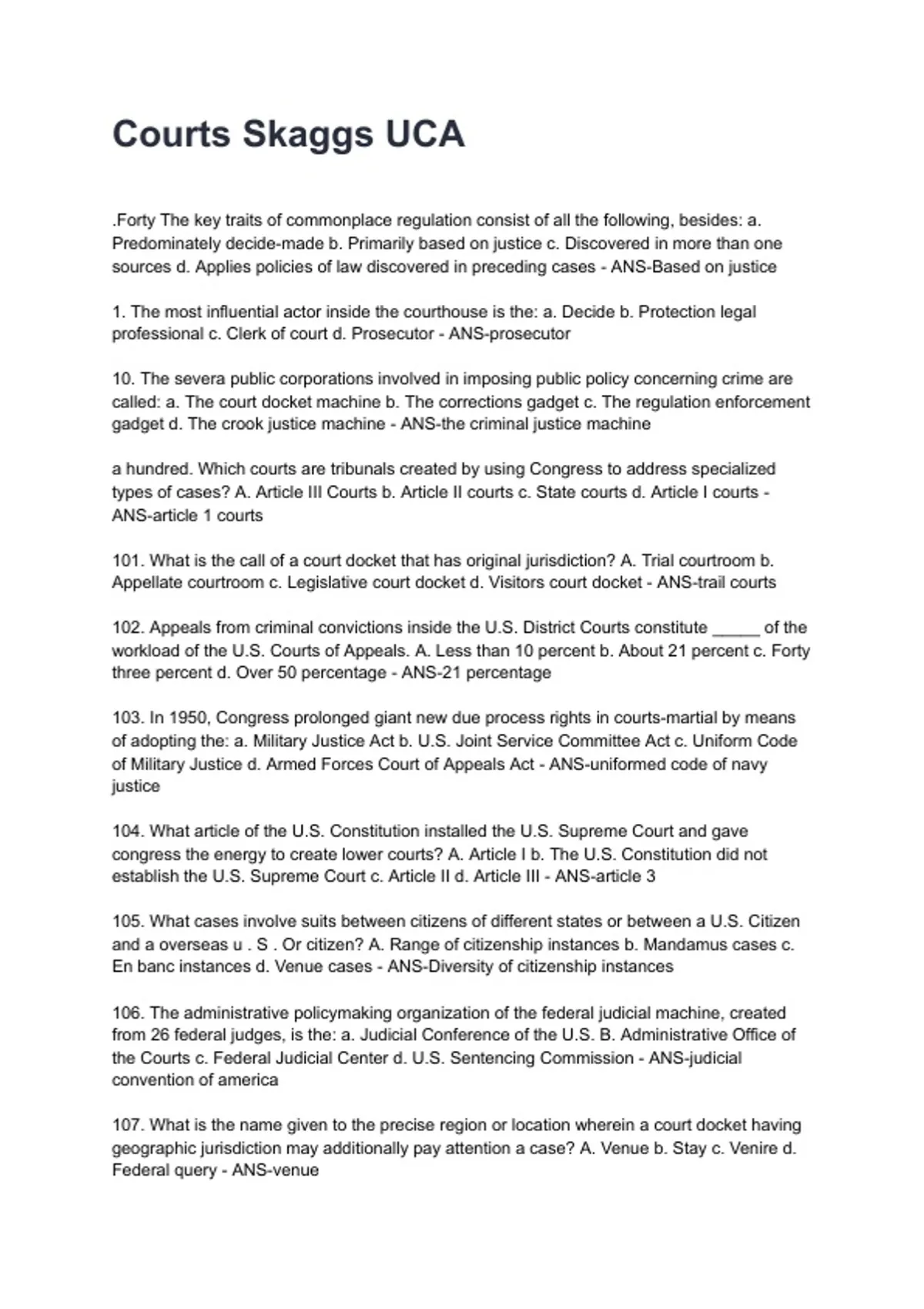 Appellate courtroom c. Legislative court docket d. Visitors court docket - ANS-trail courts
