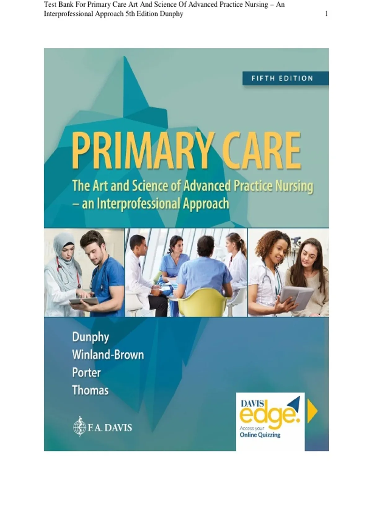 Primary Care: Art and Science of. Advanced Practice Nursing - An. Interprofessional Approach Test. Bank 5 th Edition. TEST. BANK.