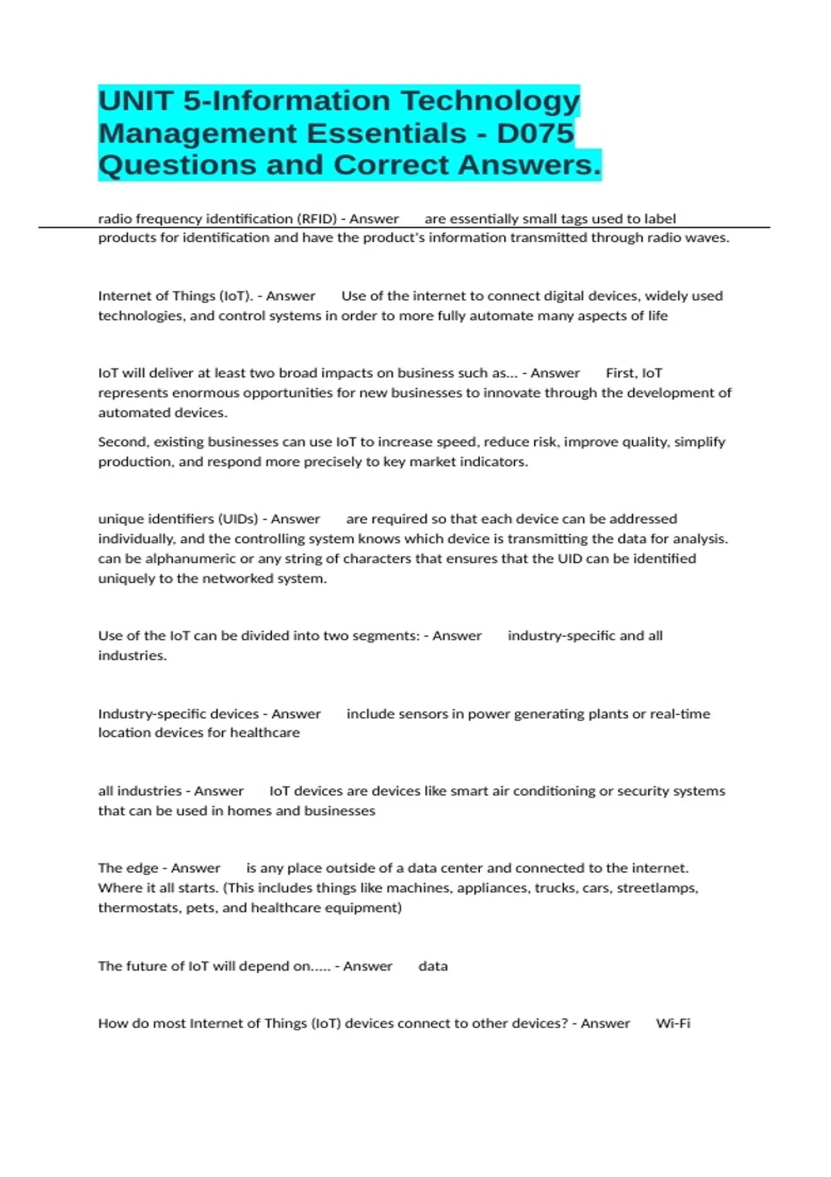 IoT will deliver at least two broad impacts on business such as... - Answer First, IoT