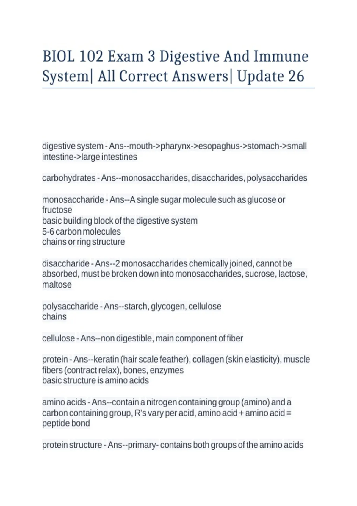 BIOL 102 Exam 3 Digestive And Immune