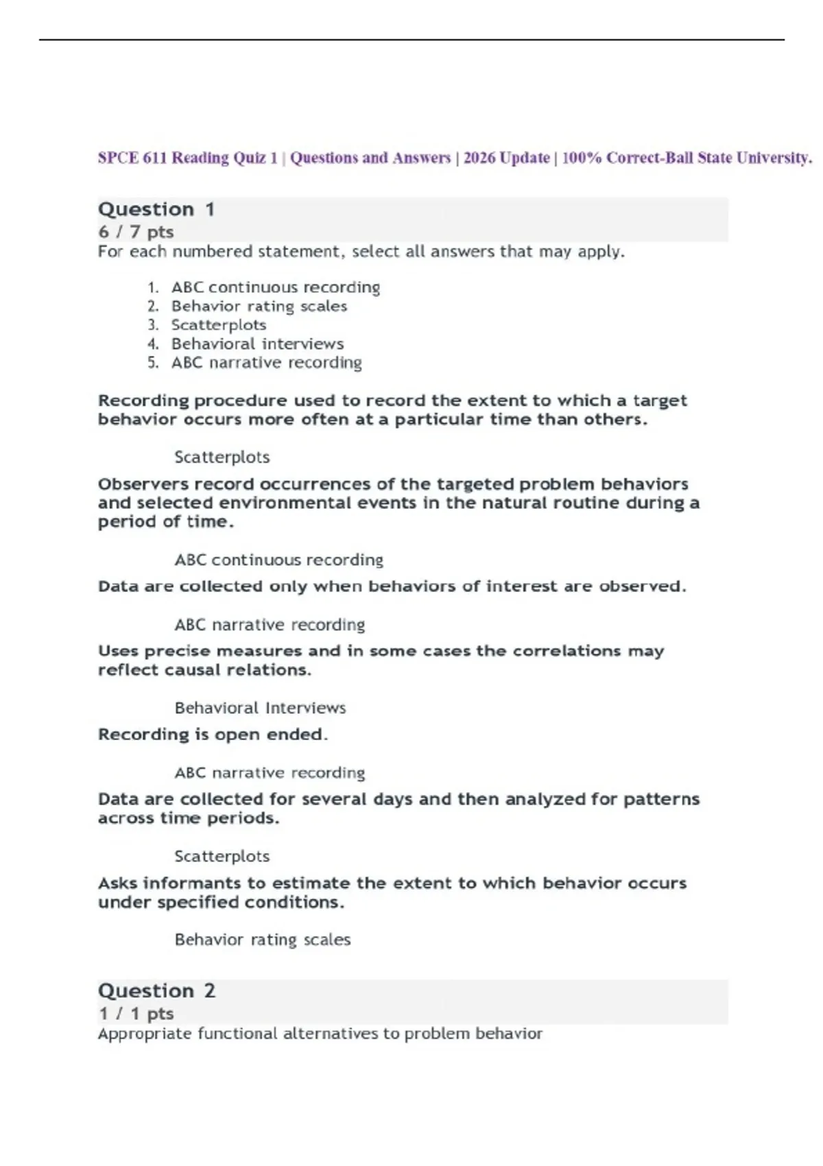 SPCE 611 Bundle with complete solutions - Ball State University.
