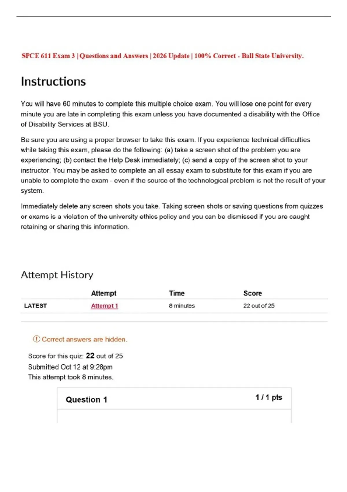 SPCE 611 Bundle with complete solutions - Ball State University.