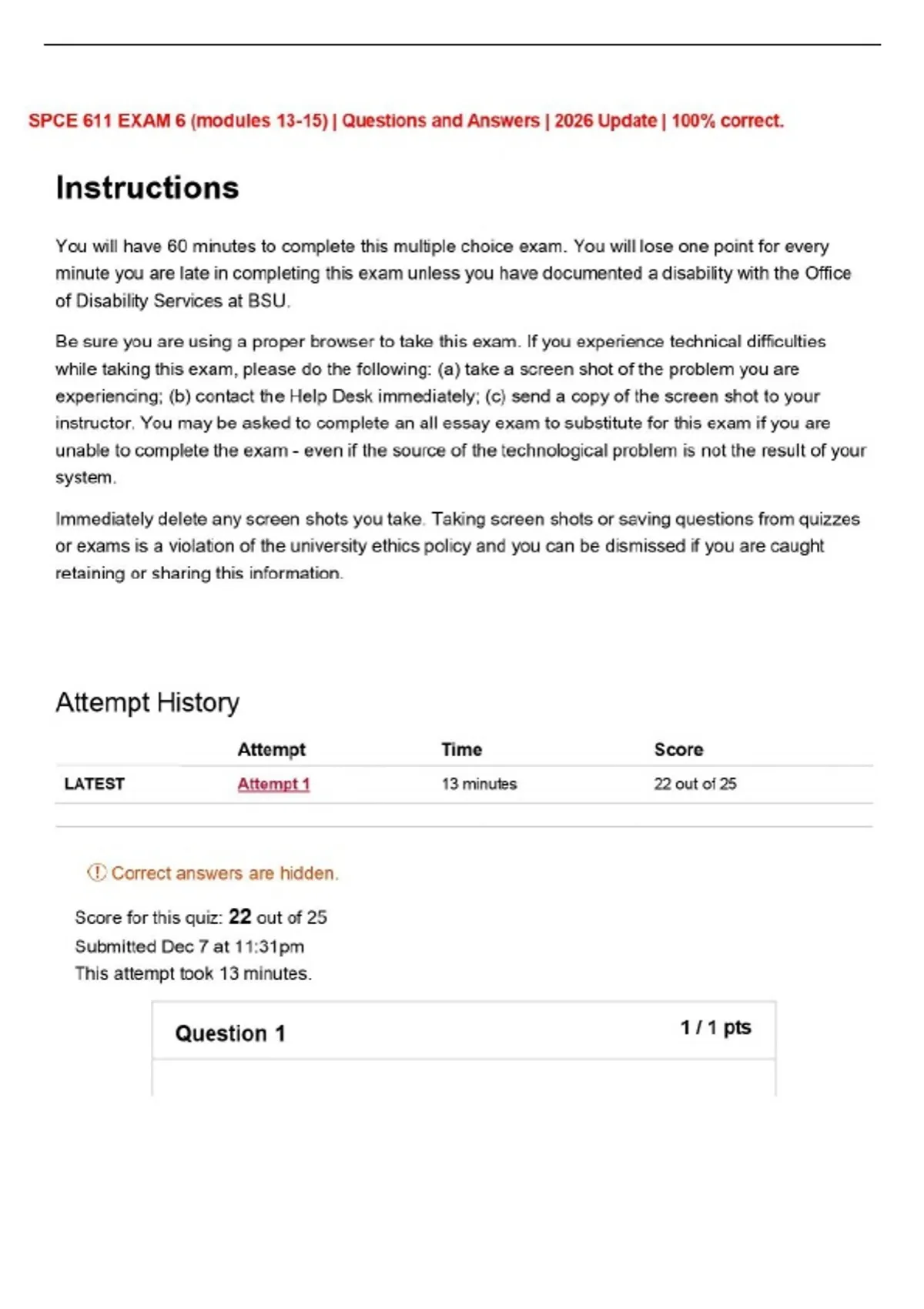 SPCE 611 EXAM 6 (modules 13-15) | Questions and Answers | 2026 Update | 100% correct.
