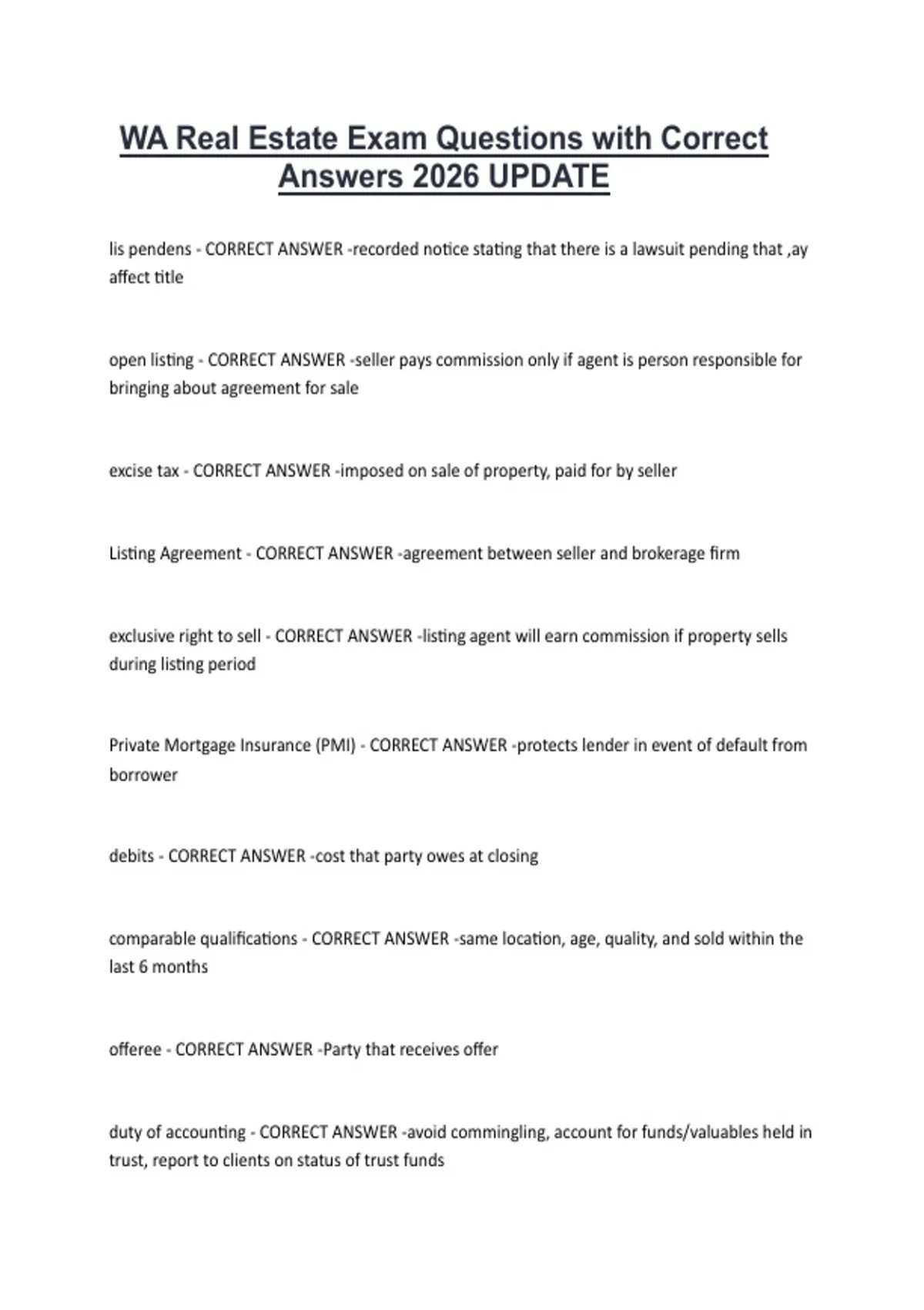 WA Real Estate Exam Questions with Correct Answers 2026 UPDATE WA Real Estate Exam Questions with Correct Answers 2026 UPDATE