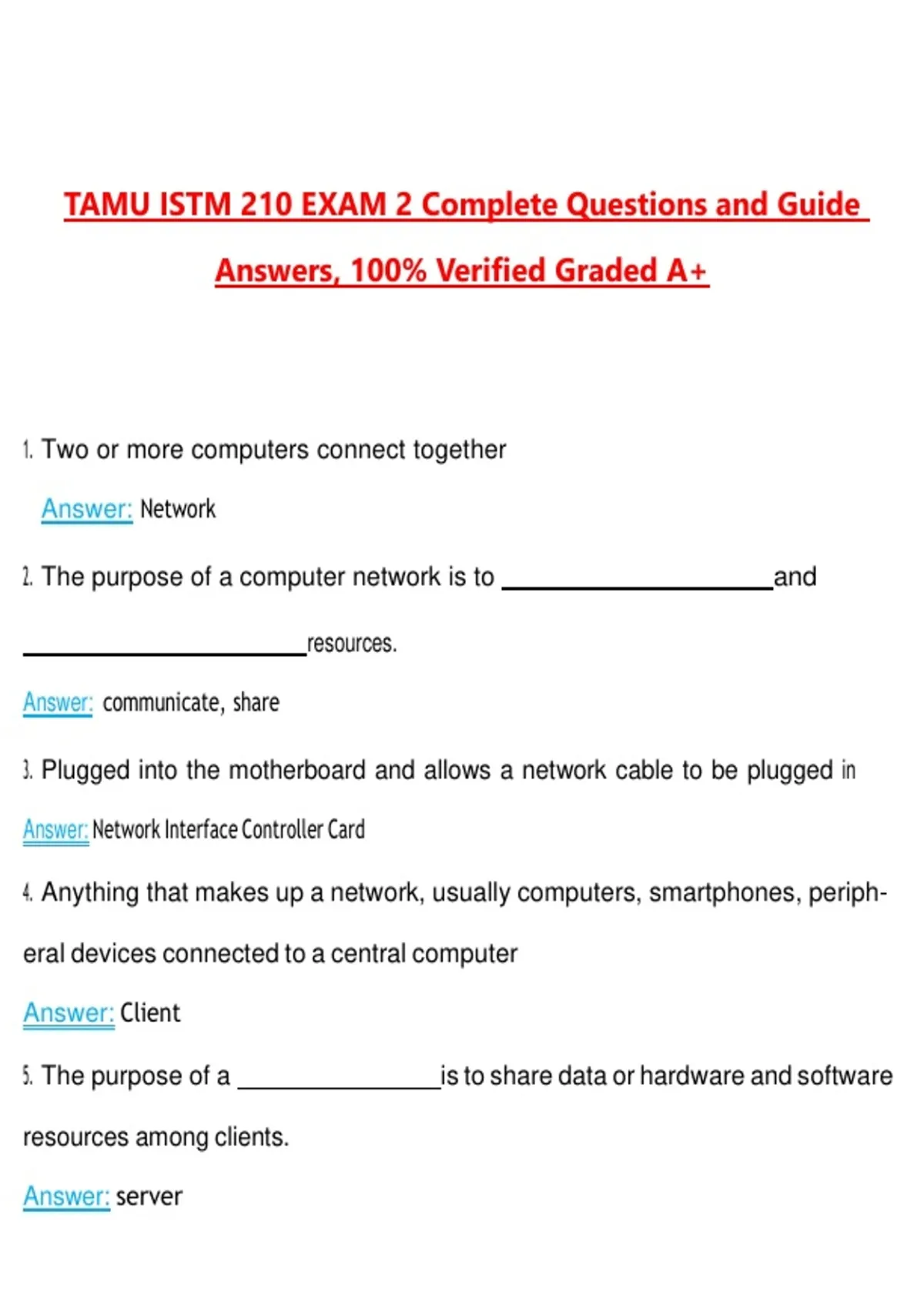 TAMU ISTM 210 EXAM 2 Questions with Correct Answers Pass the Exam, 100% Verified (2026 / 2027) Graded A+ PASS the TAMU ISTM 210 Exam 2 on your FIRST TRY with this 2026 UPDATED Practice Test & Study Guide PDF — designed to reflect real exam difficulty, IS course content, and TAMU grading standards. This premium prep resource is ideal for Texas A&M University students, ISTM 210 course candidates, and information systems learners who want fast, accurate, and exam-focused preparation. Includes realistic exam-style questions, verified correct answers, and clear explanations covering databases, Excel, Access, business analytics, information systems, data management, ERP systems, and case studies. Full-Length ISTM 210 Exam 2 Practice Test Multiple-Choice & Application-Based Questions Verified Correct Answers with Step-by-Step Explanations Coverage of Databases, Excel, Access, Data Analysis, ERP, IS Concepts & Case Studies Updated for 2026 TAMU ISTM 210 Standards Printable & Mobile-Friendly PDF Format INSTANT DIGITAL DOWNLOAD – Study Immediately TAMU ISTM 210 Exam 2, ISTM 210 practice test, Texas A&M information systems exam, Excel and Access exam prep, ISTM 210 mock exam 2026, business analytics practice test, ERP systems exam prep, database management exam, TAMU ISTM study guide pdf, information systems coursework review, ISTM 210 multiple choice questions, data analysis exam prep, case study exam practice, TAMU exam 2 study pack, instant pdf download