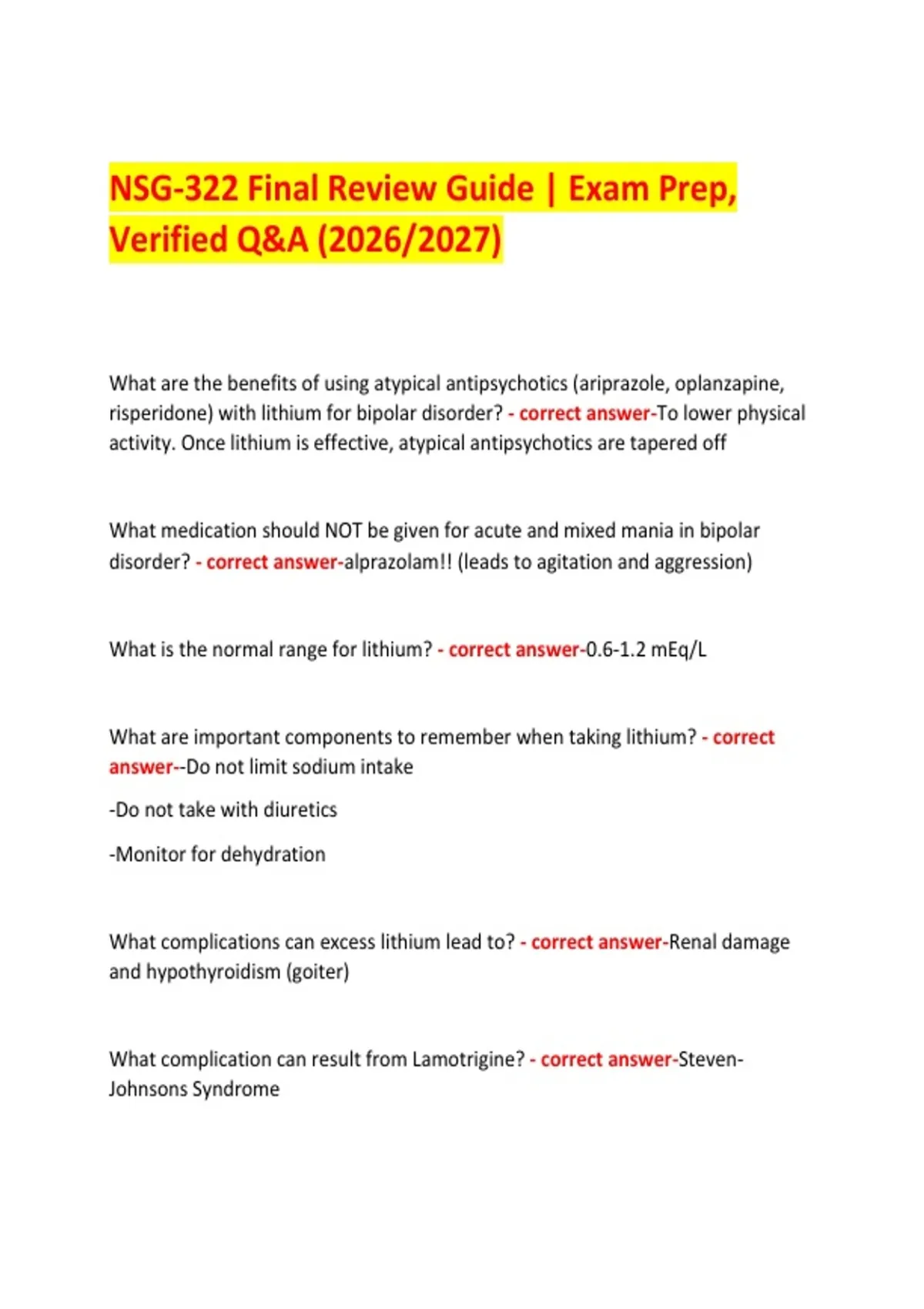 NSG-322 Final Review Guide | Exam Prep,
