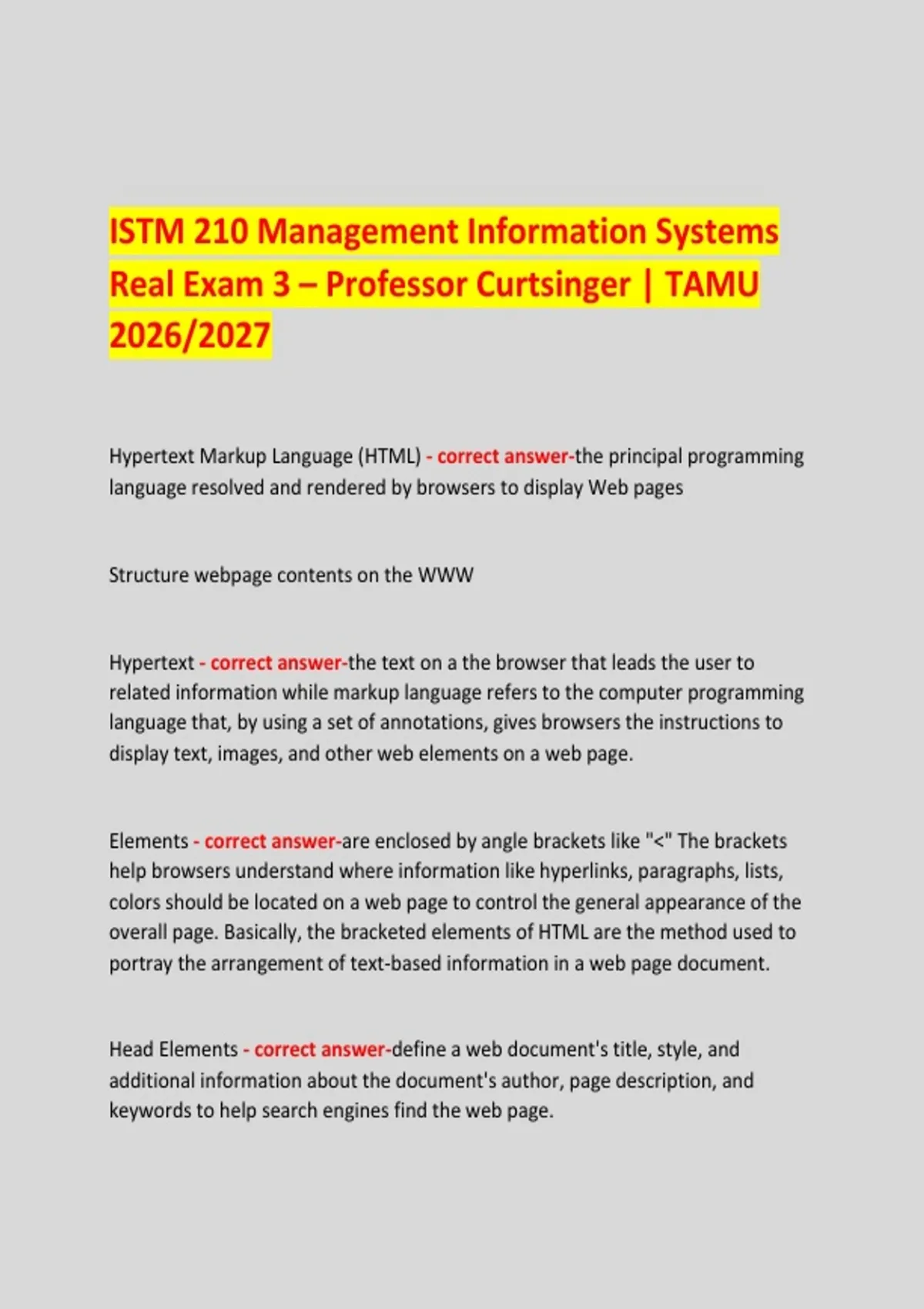 ISTM 210 Exam Bundle (TAMU) | Practice Exams, Study Guides & Verified Answers (2026–2027)
