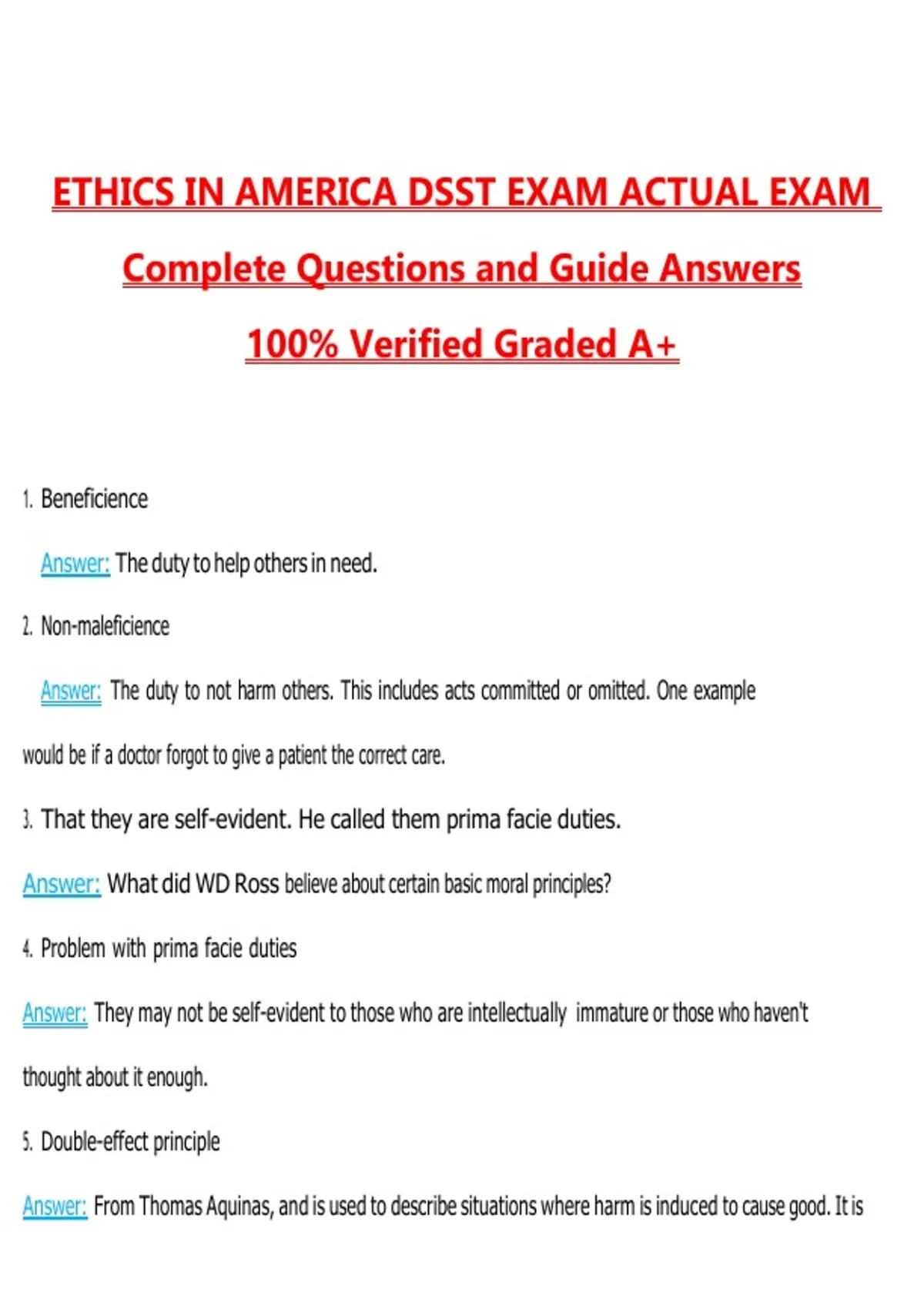 ETHICS IN AMERICA DSST EXAM ACTUAL 2026 EXAM 130 QUESTIONS AND CORRECT DETAILED ANSWERS (PASS GUARANTEE) PASS the Ethics in America DSST Exam 2026 — FAST & WITH CONFIDENCE! Stop wasting time with scattered notes and outdated textbooks. This elite Ethics in America DSST Exam Study Guide is built to help college students, adult learners, and DSST candidates master all exam content and earn college credit efficiently. This instant-download PDF includes exam-focused practice questions, clear explanations, and structured topic breakdowns, covering: Ethical theories and moral philosophy American political and social ethics Case studies and historical examples Contemporary ethical issues and debates Application of ethics in law, business, and public policy Ethics in America DSST Exam, DSST study guide PDF, Ethics in America practice questions, DSST exam prep 2026, college credit DSST exam, American ethics test prep, moral philosophy study guide, contemporary ethical issues exam, DSST online practice test, ethics case studies prep, DSST exam questions PDF, pass Ethics in America exam, adult learner DSST prep, college exam prep PDF, Ethics in America test review