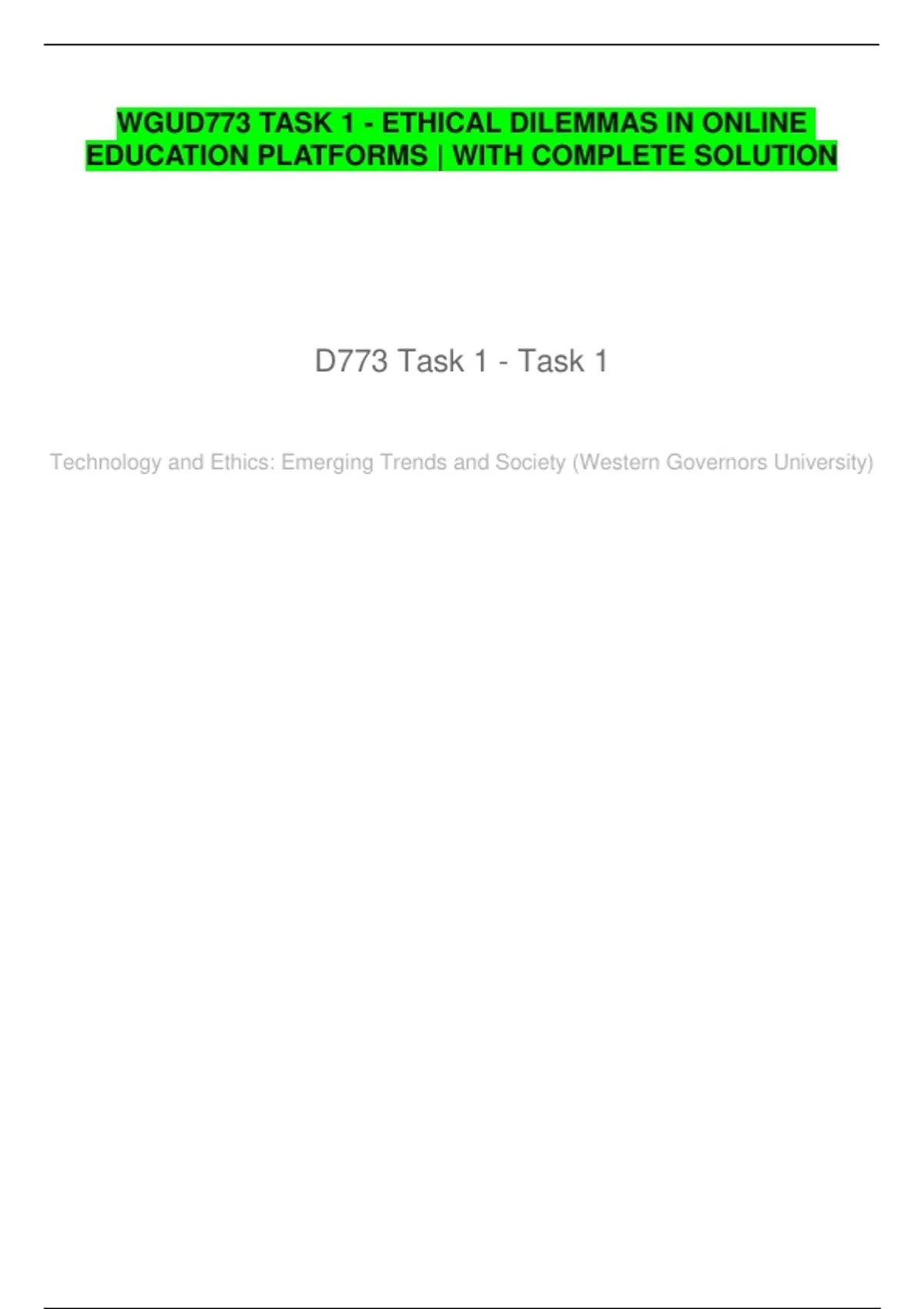 WGUD773 TASK 1 - ETHICAL DILEMMAS IN ONLINE EDUCATION PLATFORMS WITH COMPLETE SOLUTIONS