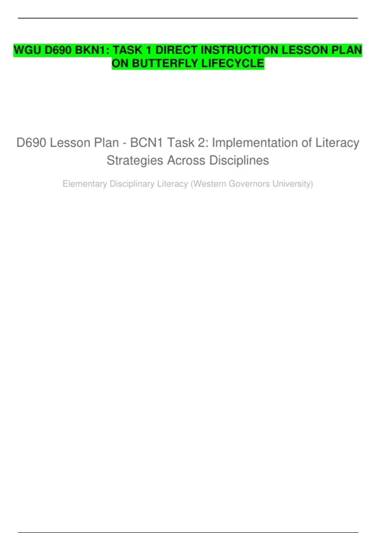 WGU D690 BKN1: TASK 1 DIRECT INSTRUCTION LESSON PLAN