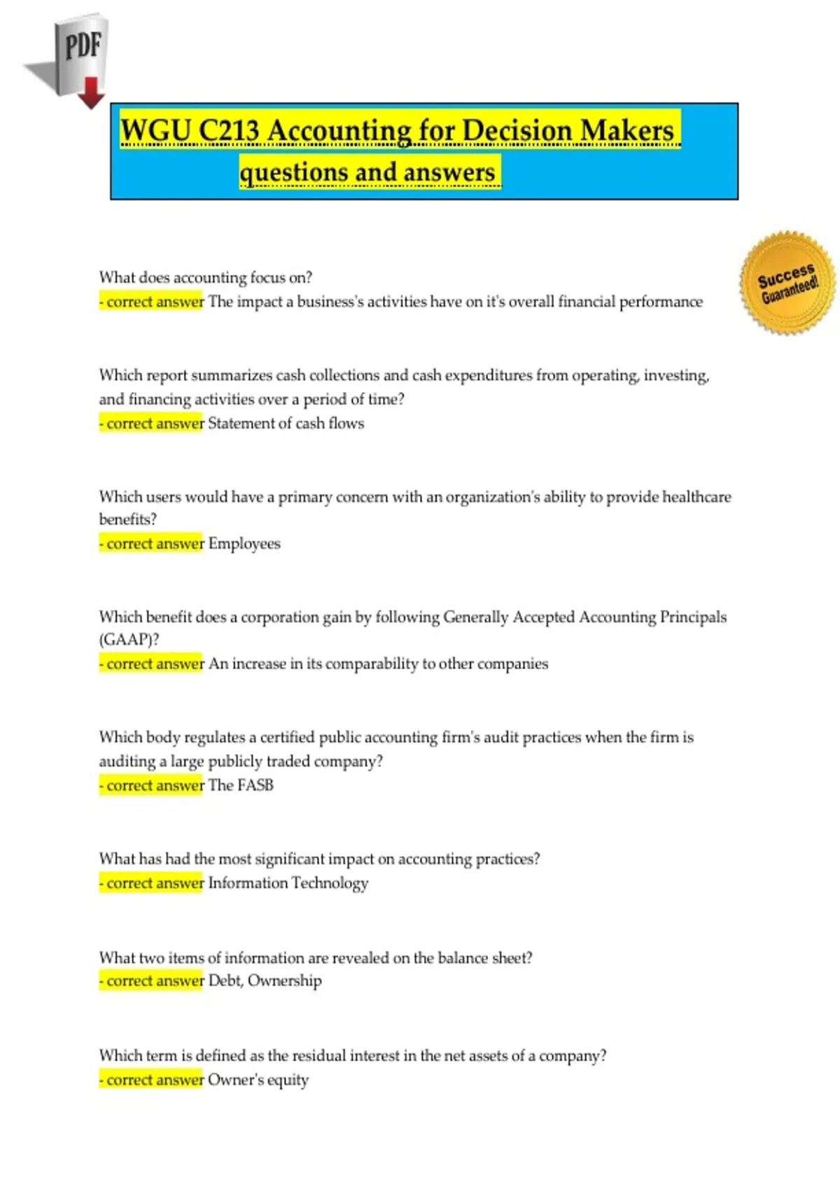 WGU C213 Accounting for Decision Makers questions and answers 2026 A