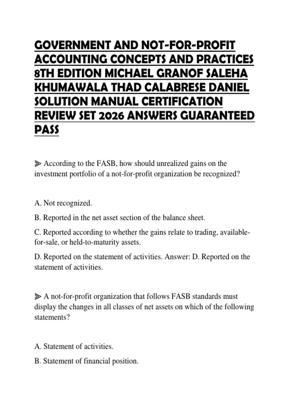 D. Reported on the statement of activities. Answer: D. Reported on the