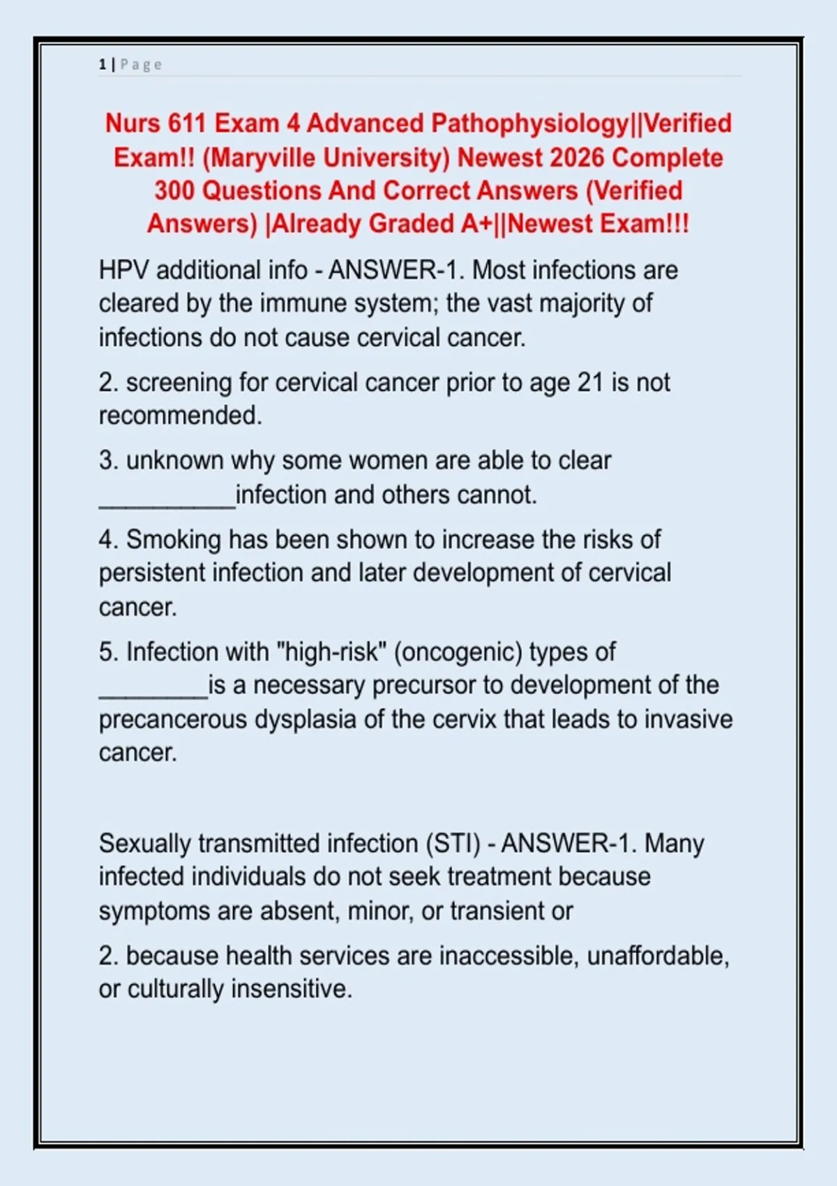 Nurs 611 Exam 4 Advanced Pathophysiology||Verified Exam!! (Maryville University) Newest 2026 Complete 300 Questions And Correct Answers (Verified Answers) |Already Graded A+||Newest Exam!!!