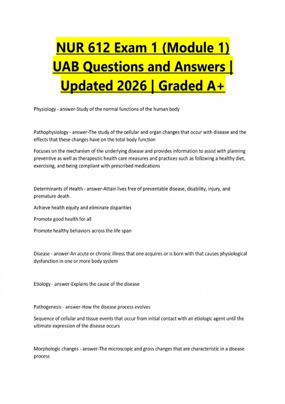 NUR 612 Exam 1 (Module 1) UAB Questions and Answers | Updated 2026 | Graded A+