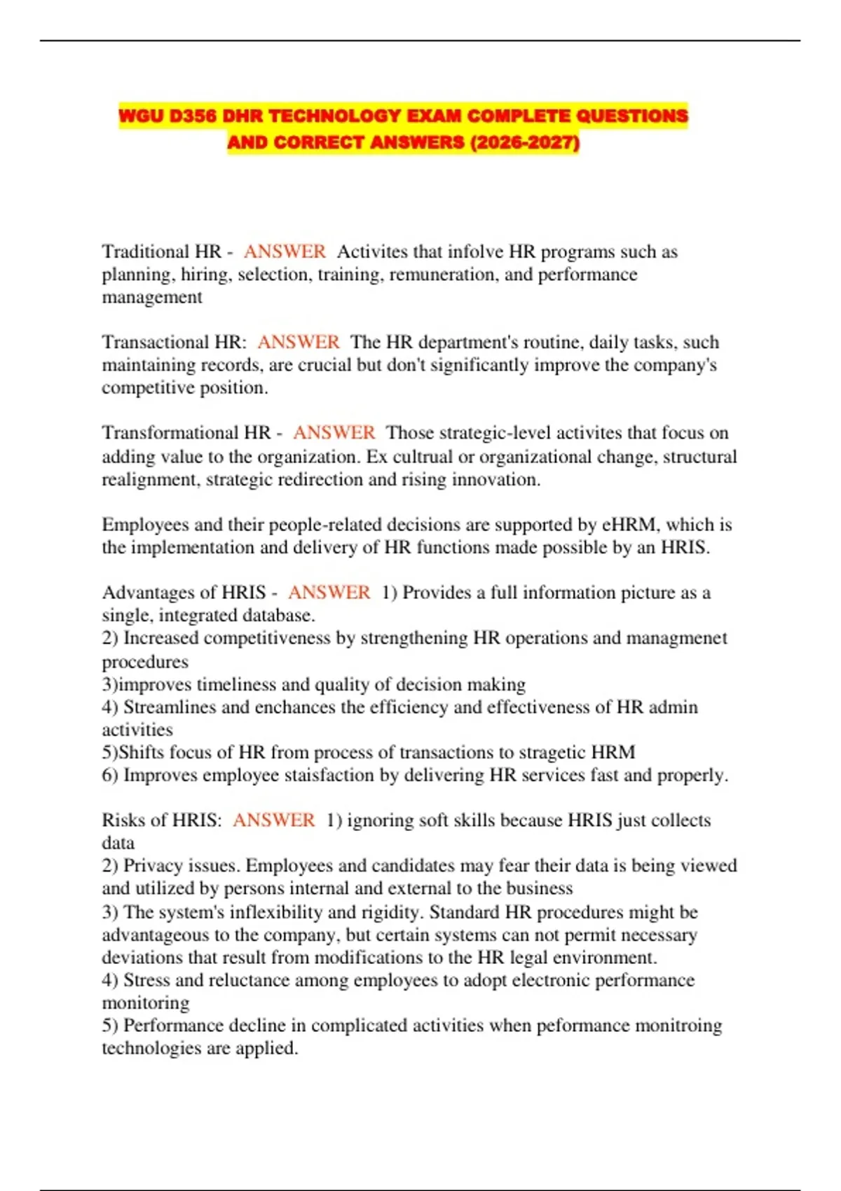 WGU D356 DHR TECHNOLOGY EXAM COMPLETE QUESTIONS
