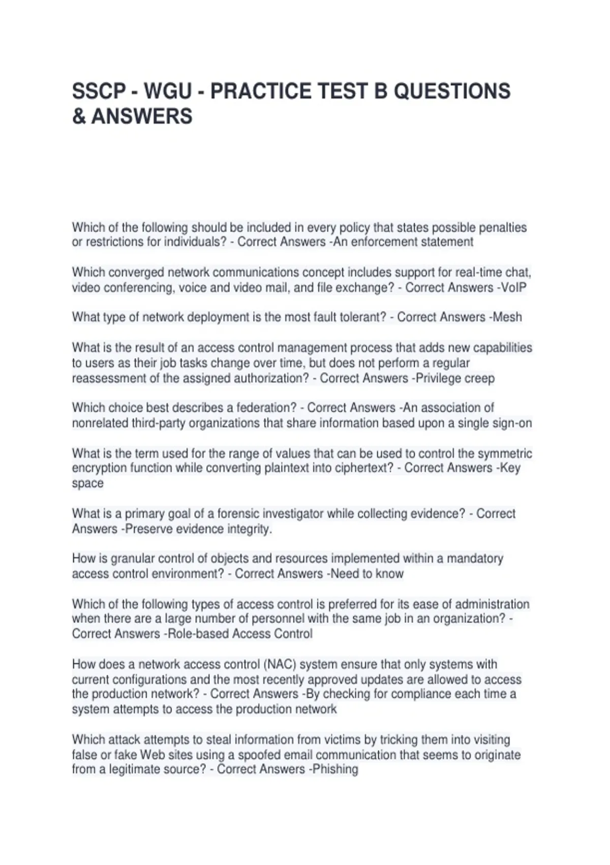 SSCP - WGU - PRACTICE TEST B QUESTIONS