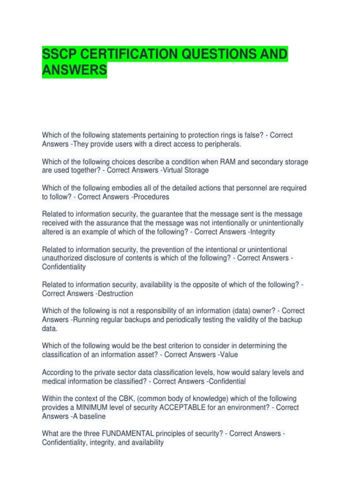 SSCP CERTIFICATION QUESTIONS AND ANSWERS