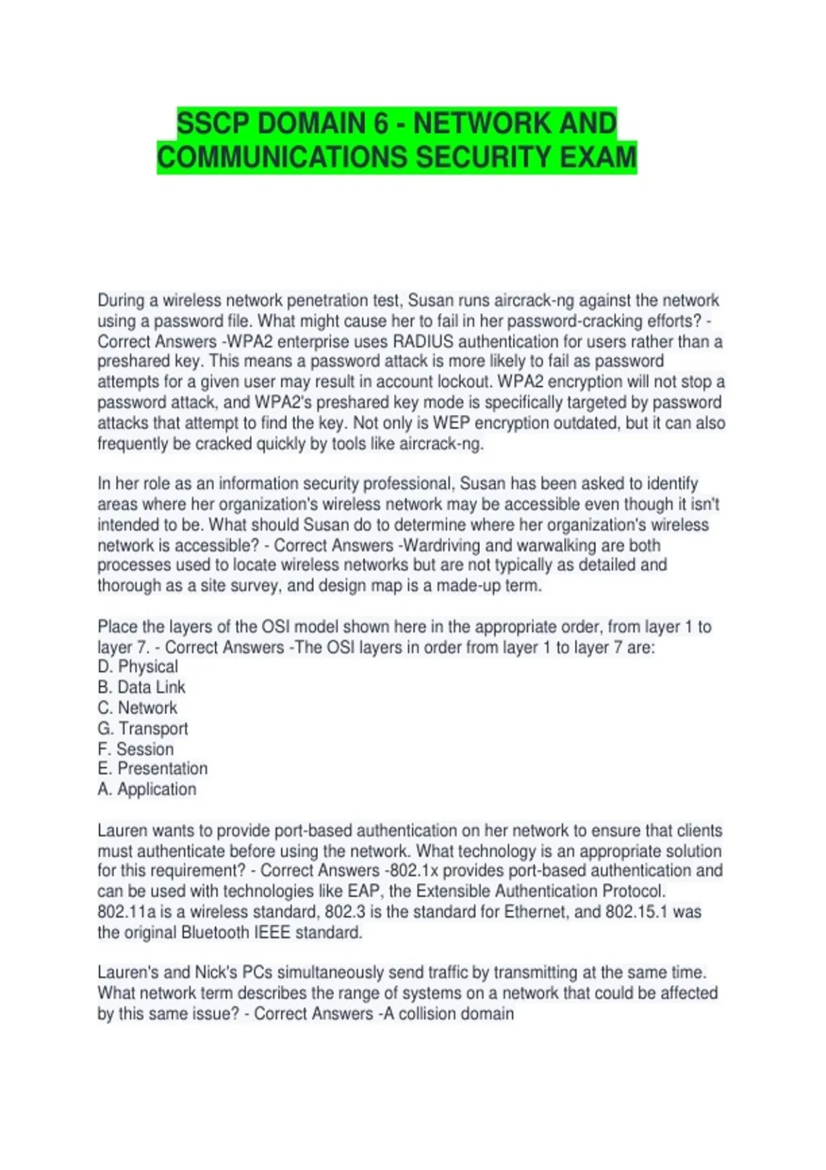 SSCP DOMAIN 6 - NETWORK AND COMMUNICATIONS SECURITY EXAM QUESTIONS WITH CORRECT ANSWERS