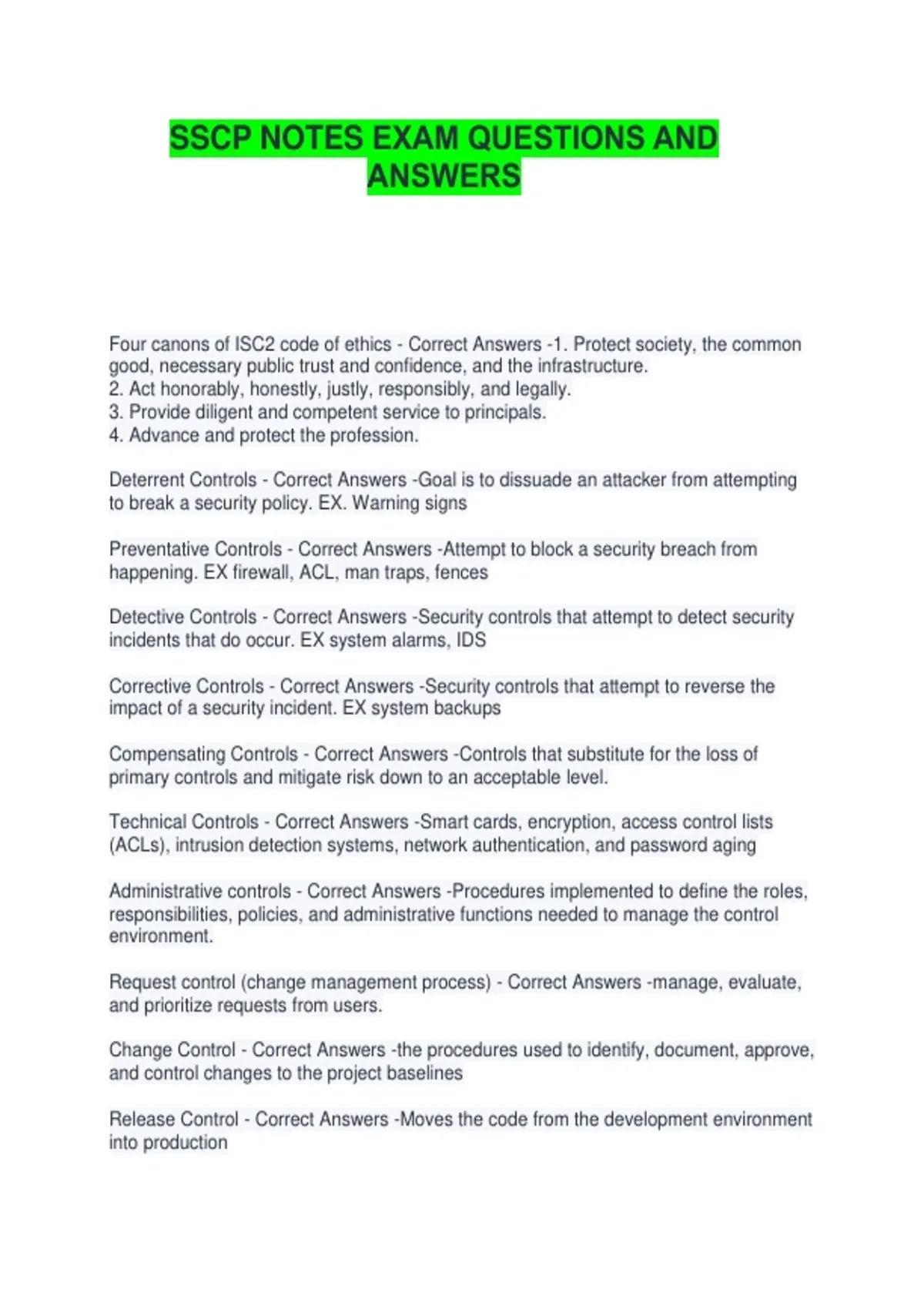 SSCP NOTES EXAM QUESTIONS AND