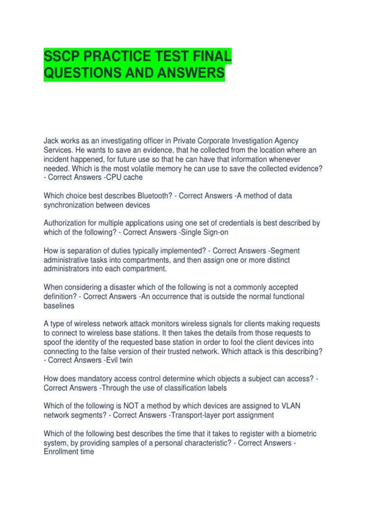 SSCP PRACTICE TEST FINAL QUESTIONS AND ANSWERS