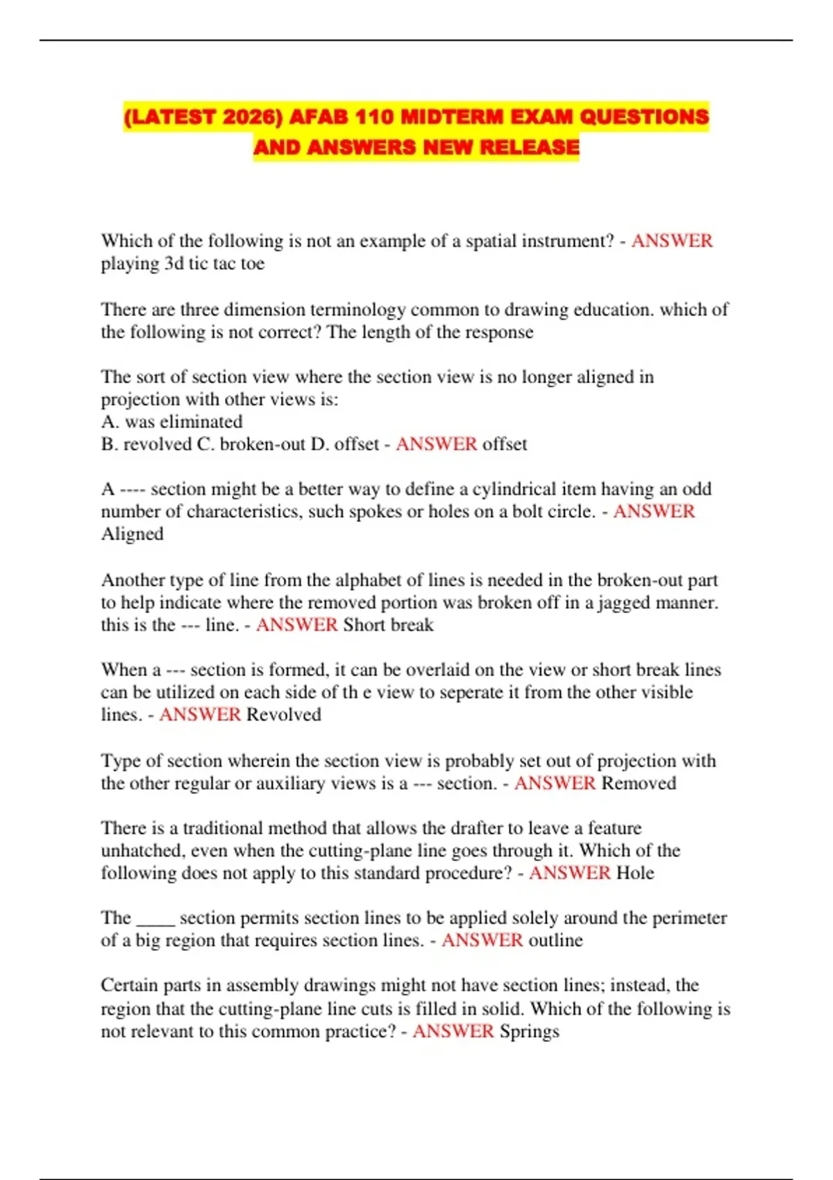 (LATEST 2026) AFAB 110 MIDTERM EXAM QUESTIONS AND ANSWERS NEW RELEASE...
