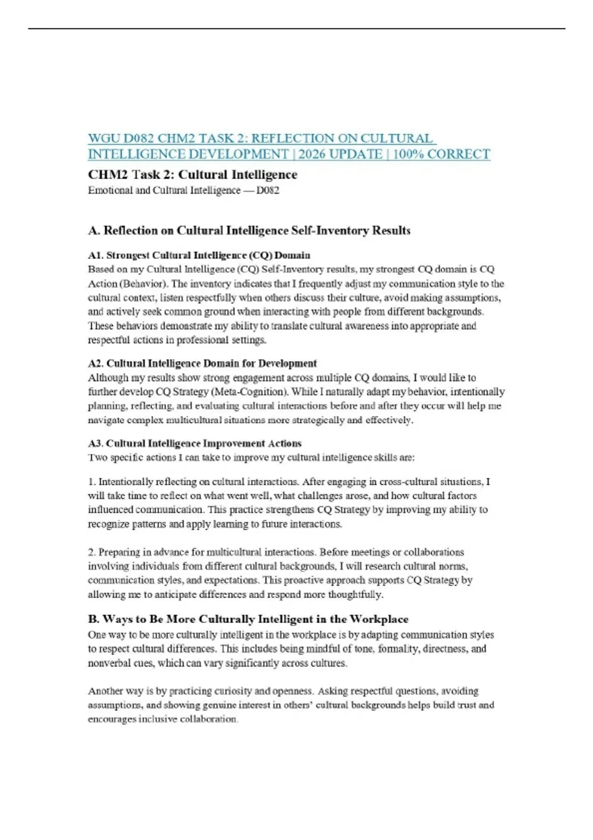 WGU D082 CHM2 TASK 2: REFLECTION ON CULTURAL INTELLIGENCE DEVELOPMENT | 2026 UPDATE | 100% CORRECT