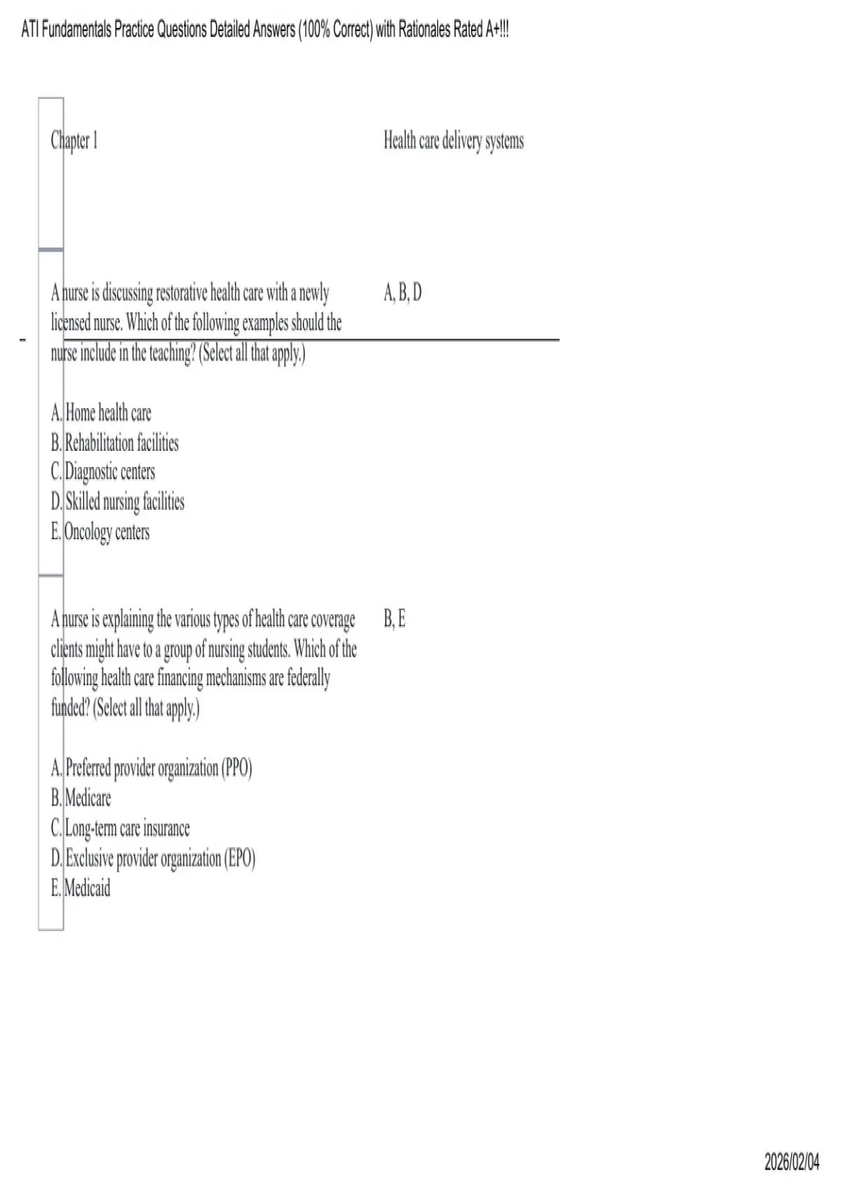 ,ATI Fundamentals Practice Questions Detailed Answers (100% Correct) with Rationales Rated A+!!!