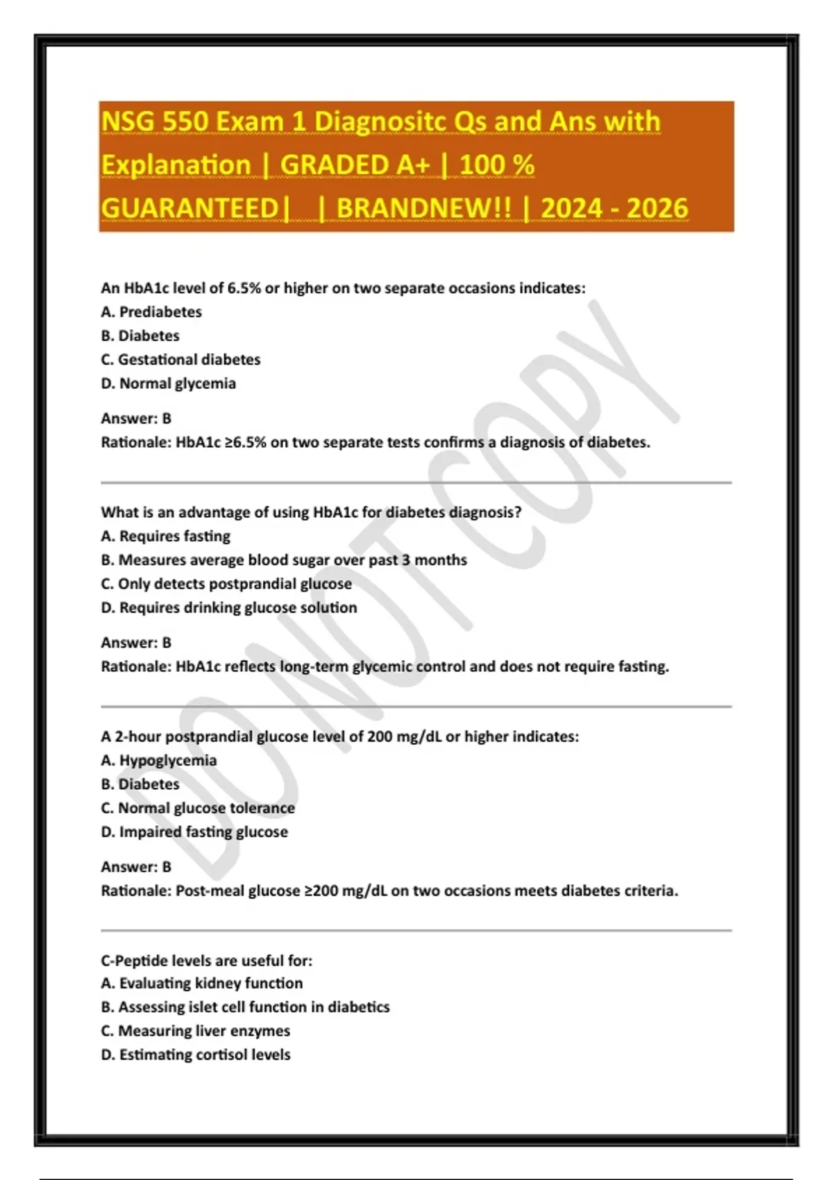NSG 550 Exam 1 Diagnositc Qs and Ans with