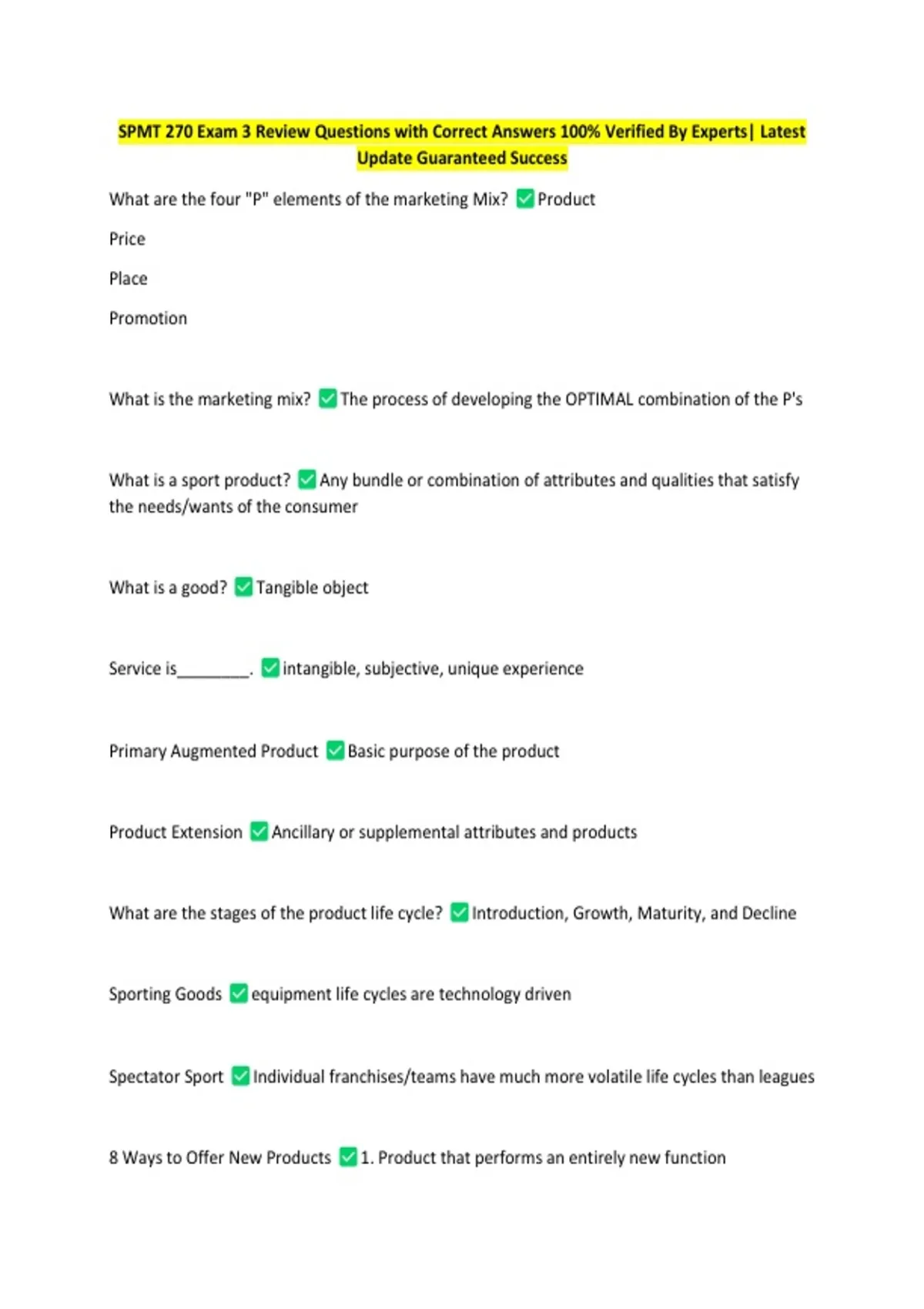 SPMT 270 Exam 3 Review Questions with Correct Answers 100% Verified By Experts