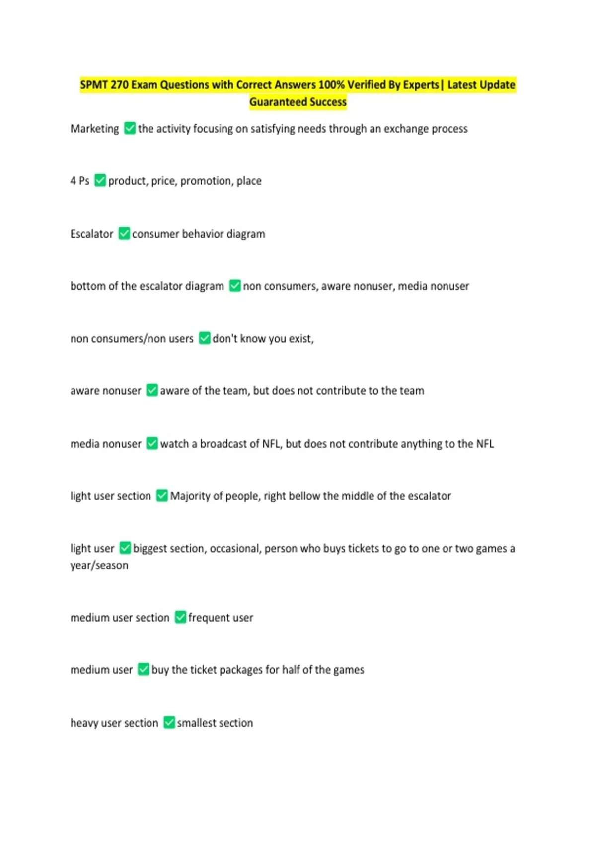 SPMT 270 Exam Questions with Correct Answers 100% Verified By Experts| Latest Update
