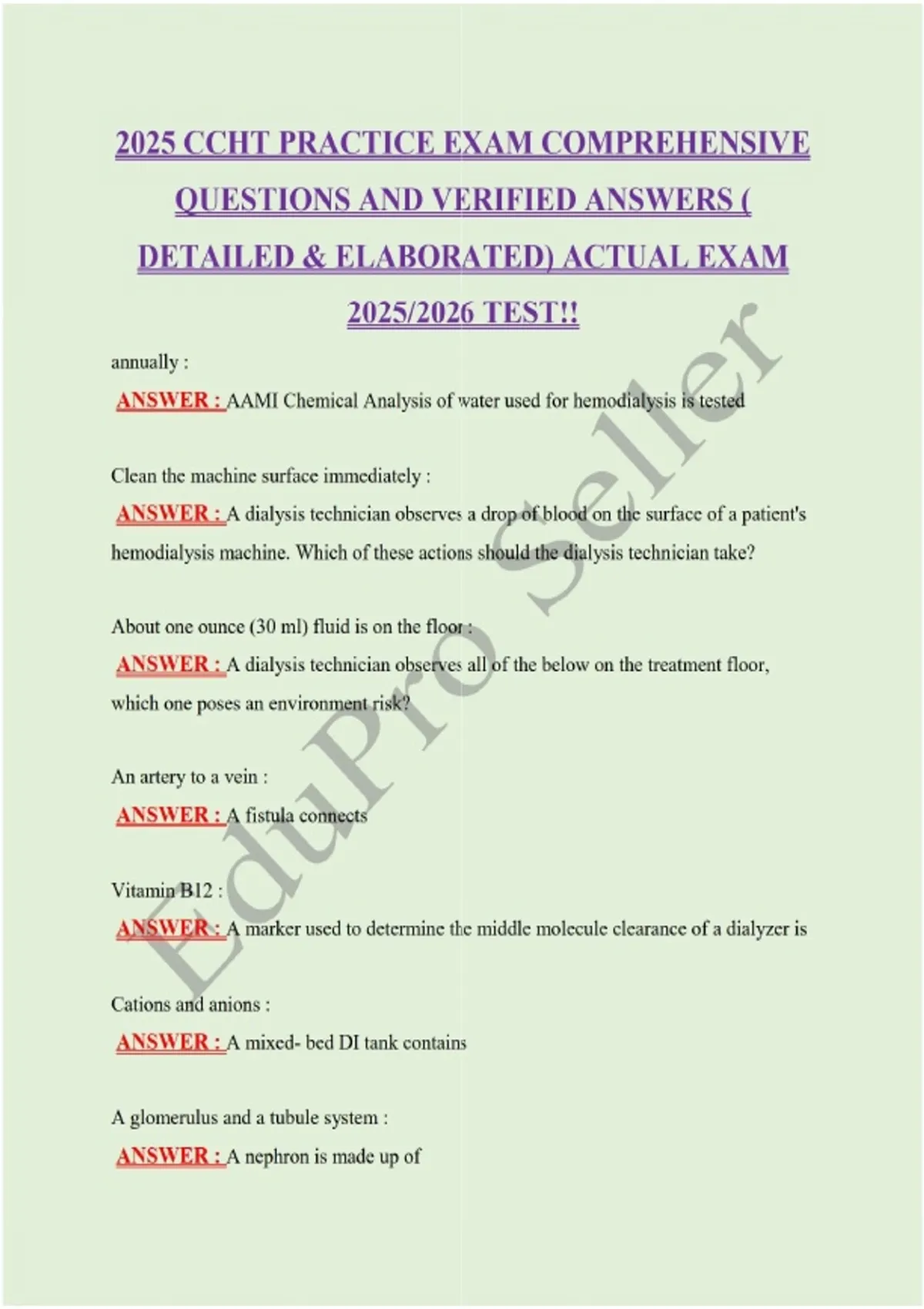 2025 CCHT PRACTICE EXAM COMPREHENSIVE QUESTIONS AND VERIFIED ANSWERS