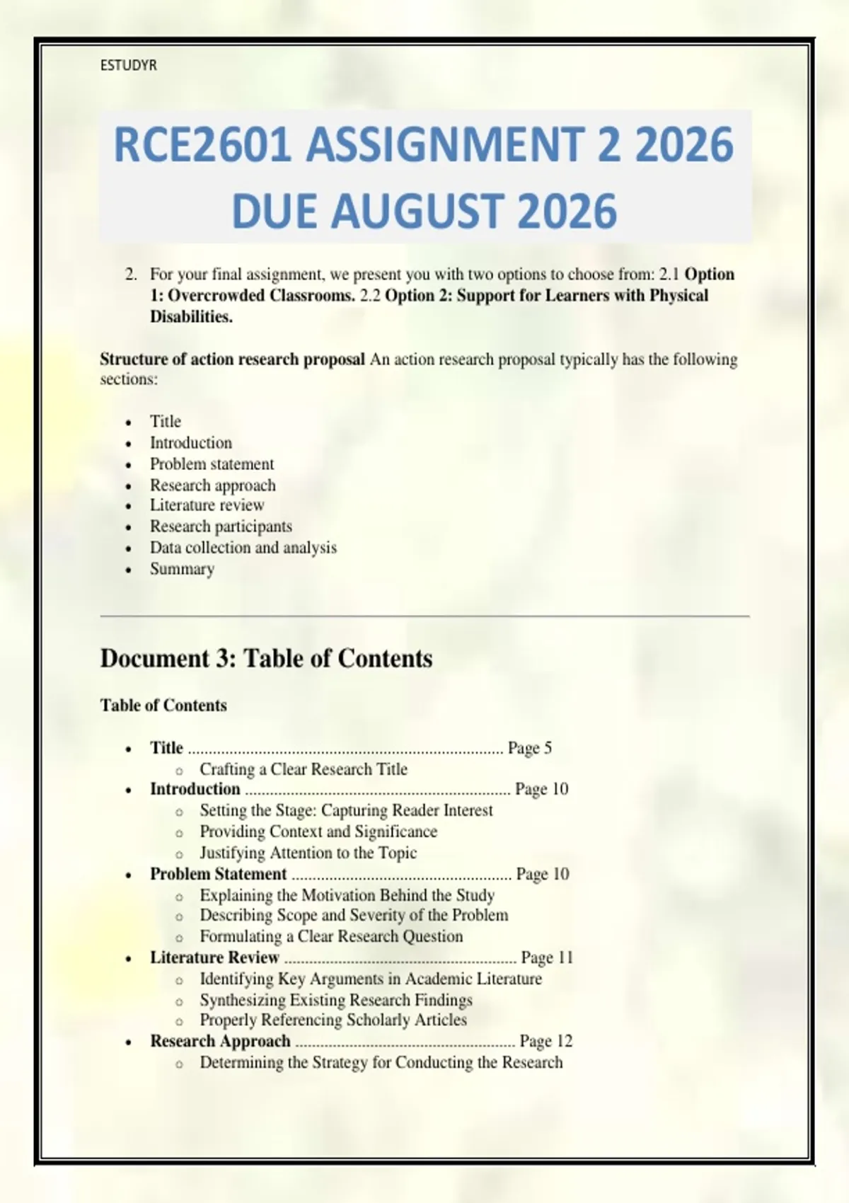 Document 3: Table of Contents