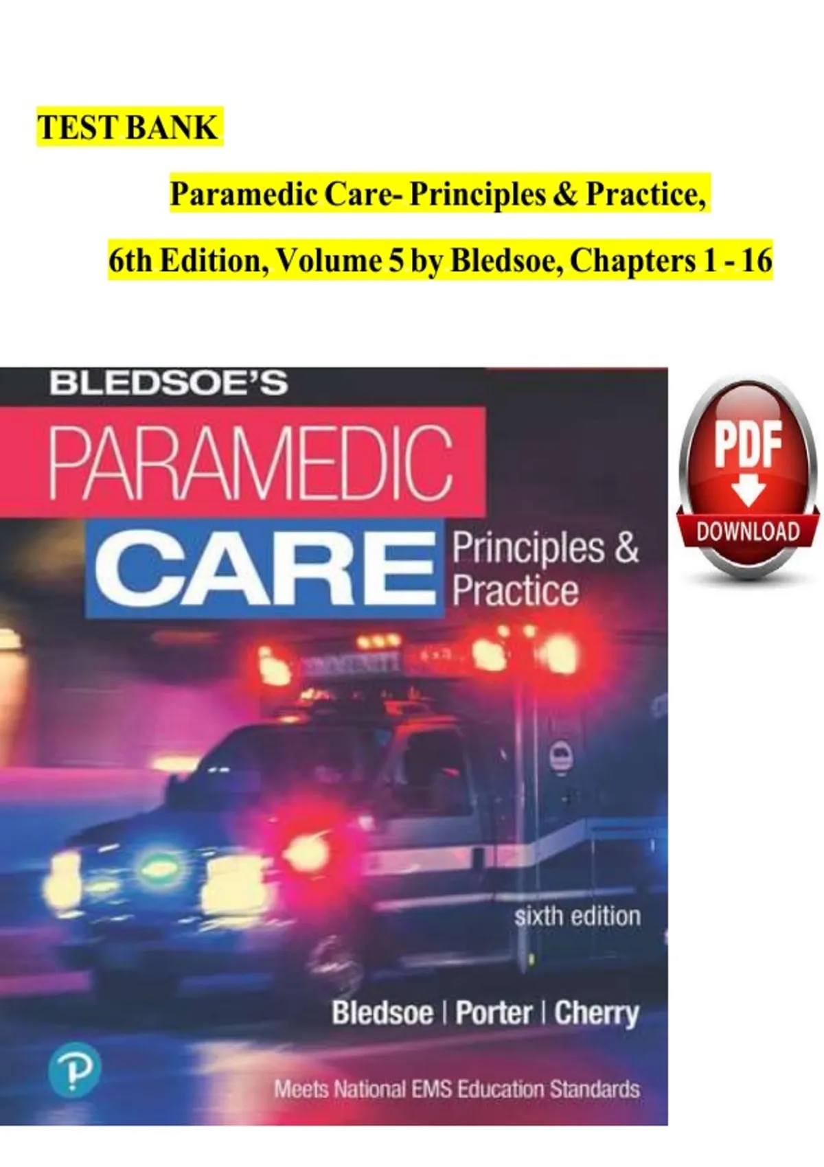 TEST BANK PARAMEDIC CARE: PRINCIPLES & PRACTICE, 5TH EDITION Volume 5 Special Considerations and Operations BLEDSOE