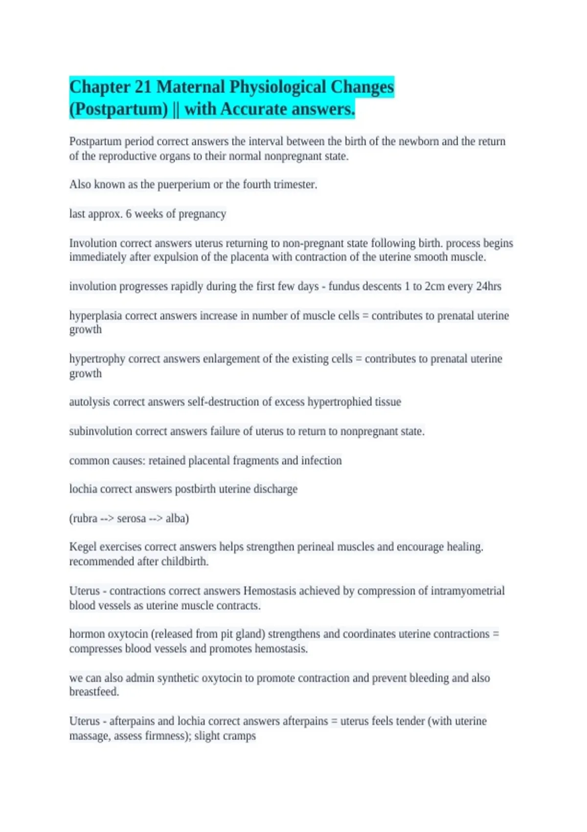 Postpartum period correct answers the interval between the birth of the newborn and the return
