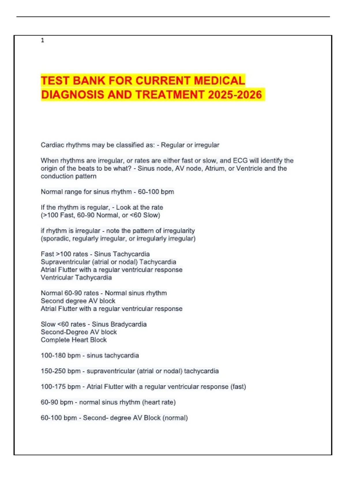 TEST BANK FOR CURRENT MEDICAL DIAGNOSIS AND TREATMENT