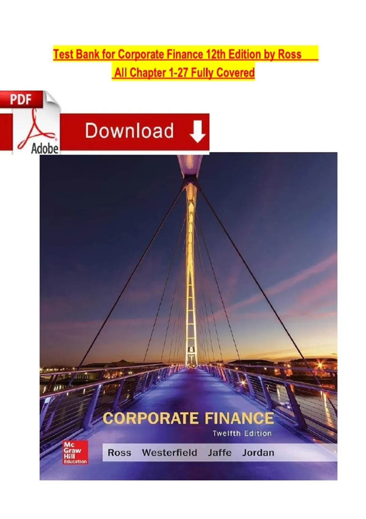 Test Bank For Corporate Finance 12th Edition By Ross All (Chapter 1-27) Updated Version 2025 Complete Newest Edition Instant Download PDFTest Bank For Corporate Finance 12th Edition By Ross All (Chapter 1-27) Updated Version 2025 Complete Newest Edition Instant Download PDF
