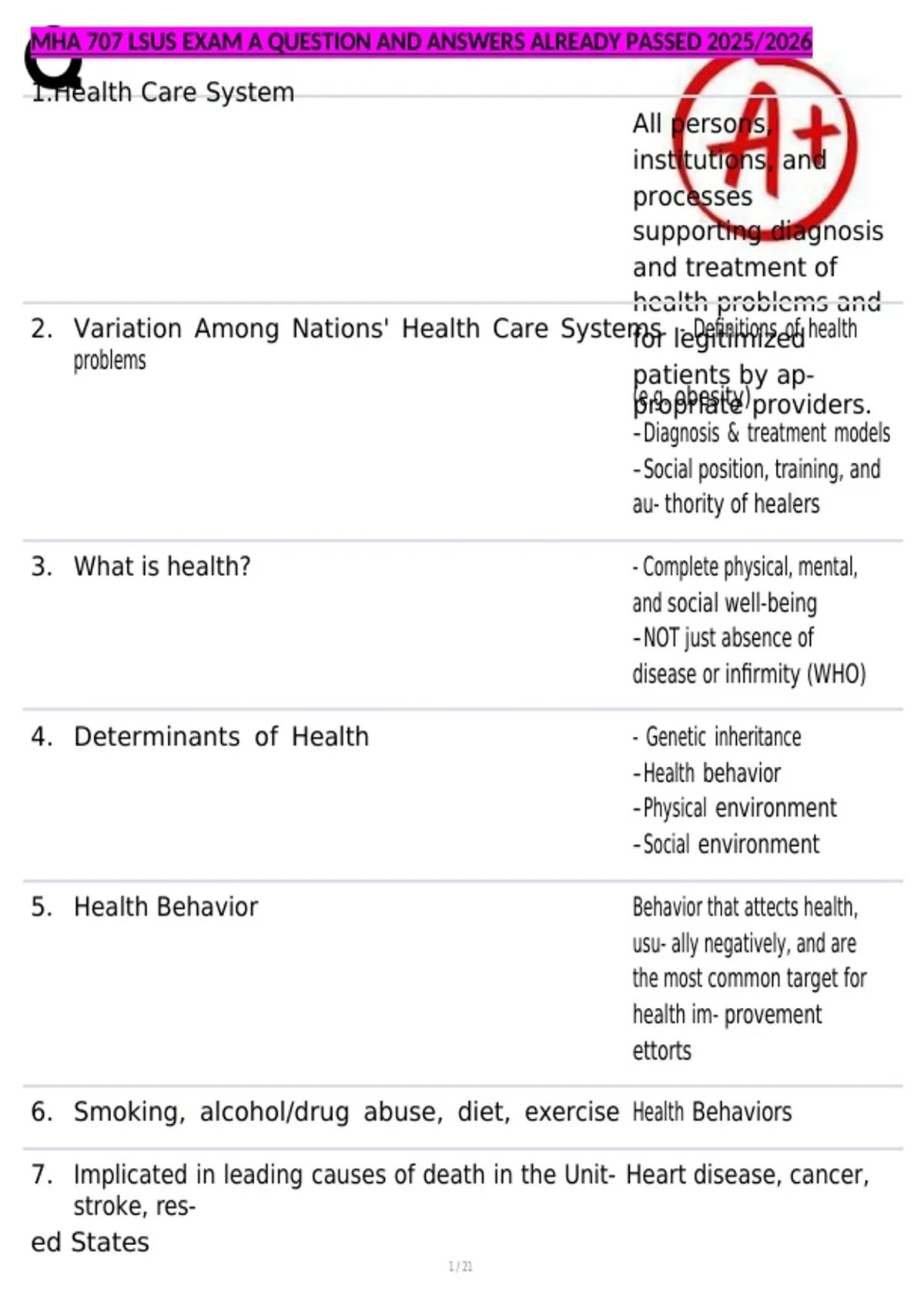 , MHA 707 LSUS EXAM A