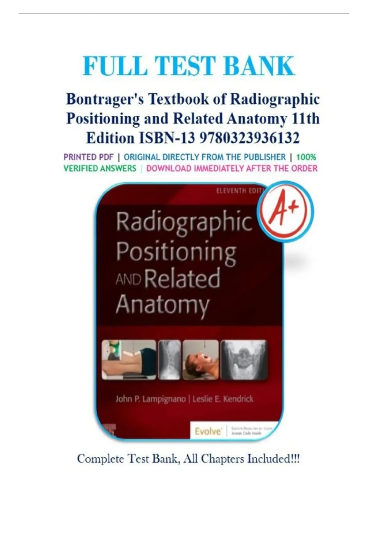 Test bank for Radiographic Positioning and Related Anatomy 11th Edition by John Lampignano & Leslie E.