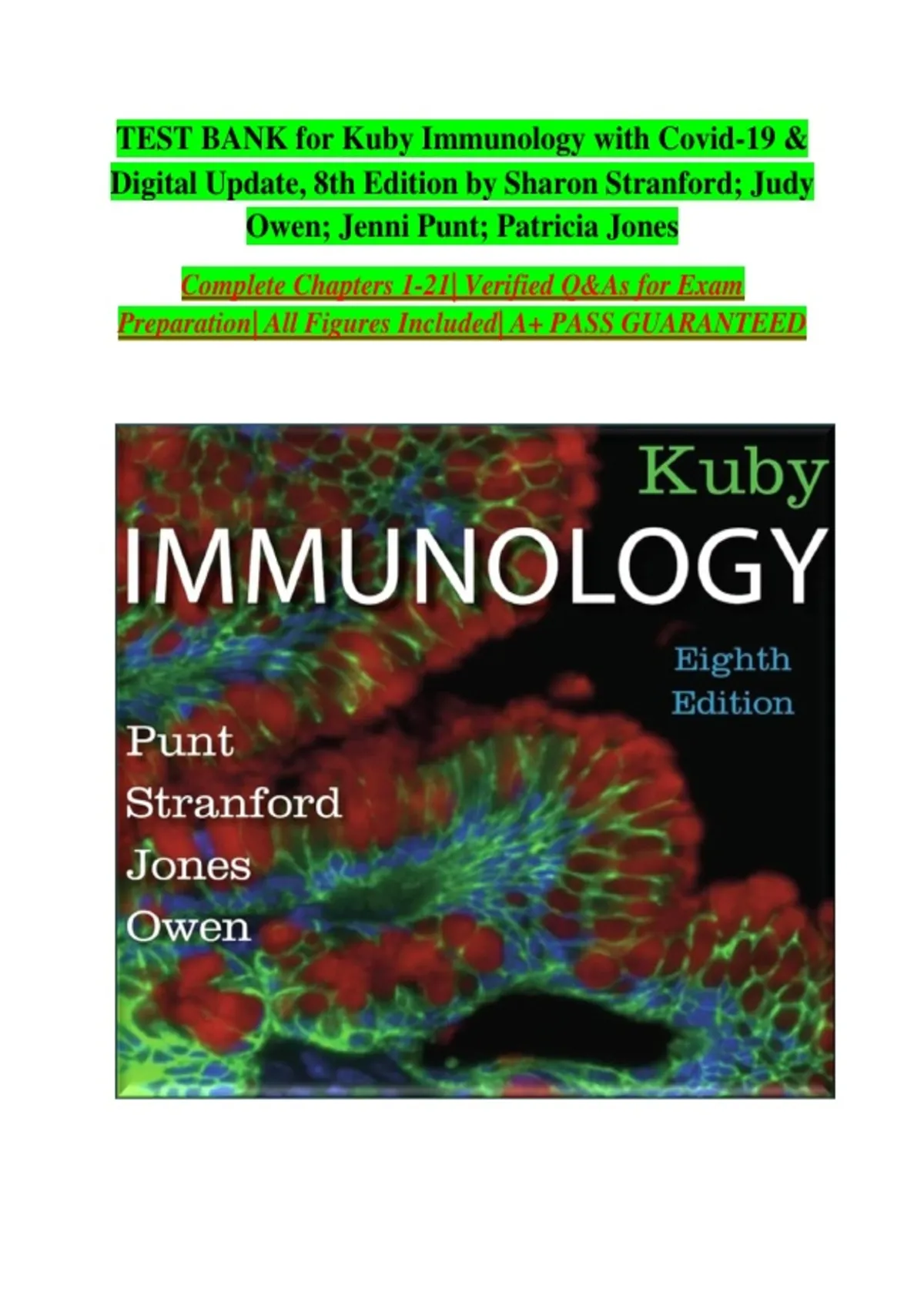 TEST BANK for Kuby Immunology with Covid-19 & Digital Update, 8th Edition by Sharon Stranford; Judy Owen; Jenni Punt; Patricia Jones Complete Chapters 1-21| Verified Q&As for Exam Preparation| All Figures Included| A+ PASS GUARANTEED
